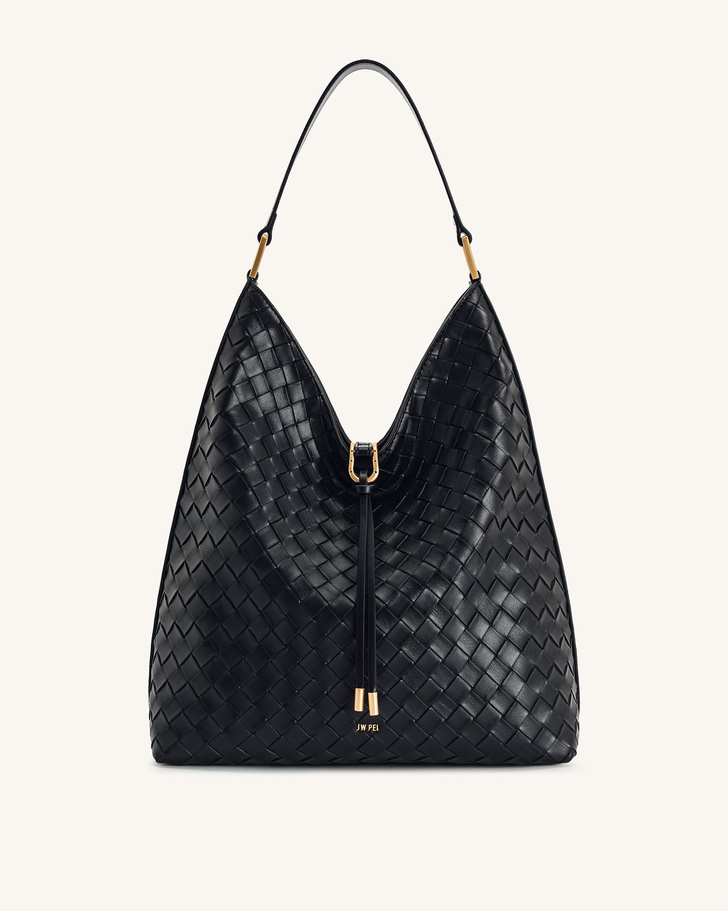 Olivia 핸드우븐 메탈 핸들 호보백 - 블랙