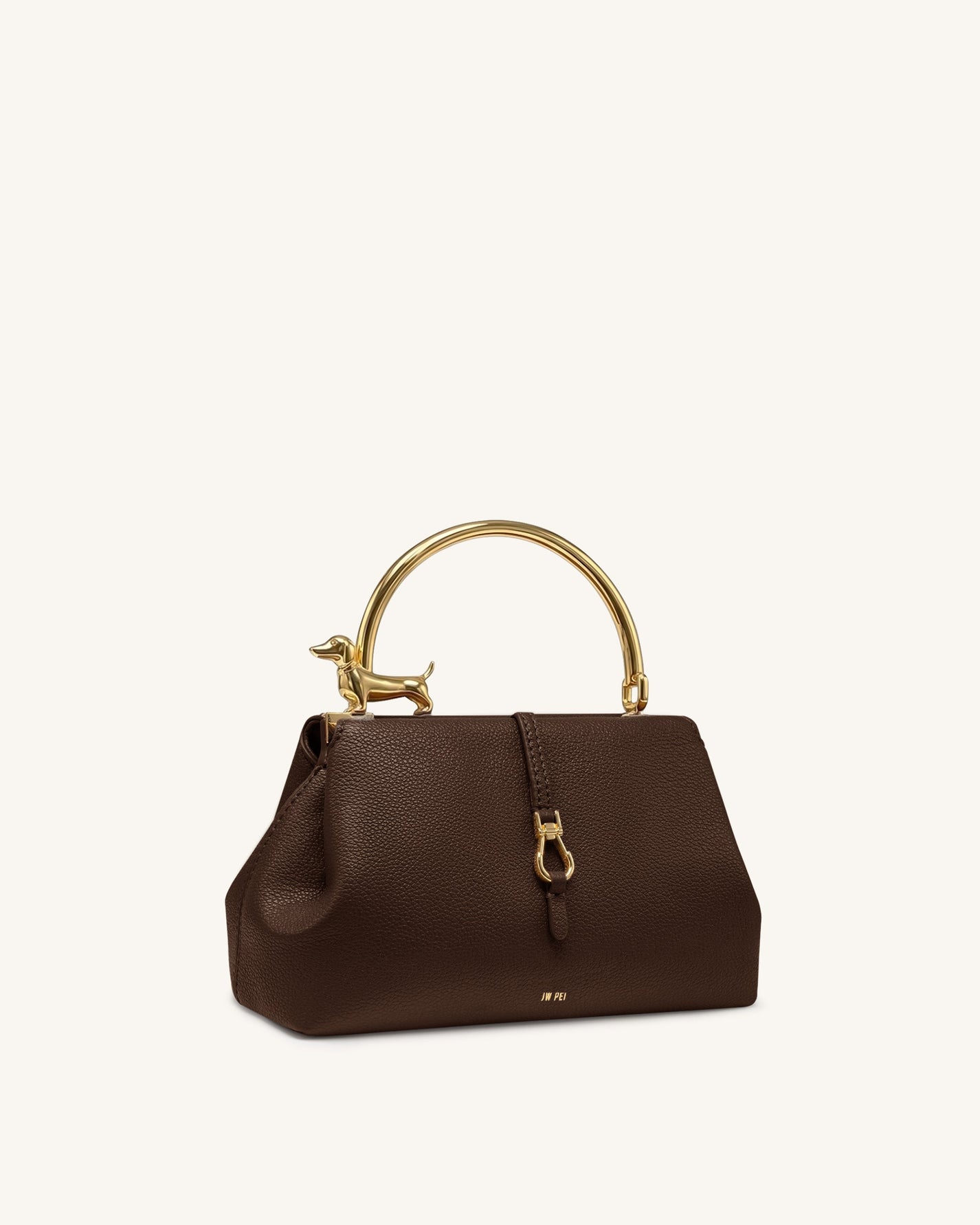 Bruna 닥스훈트 메탈 핸들 탑 핸들 백 - 라이트 브라운