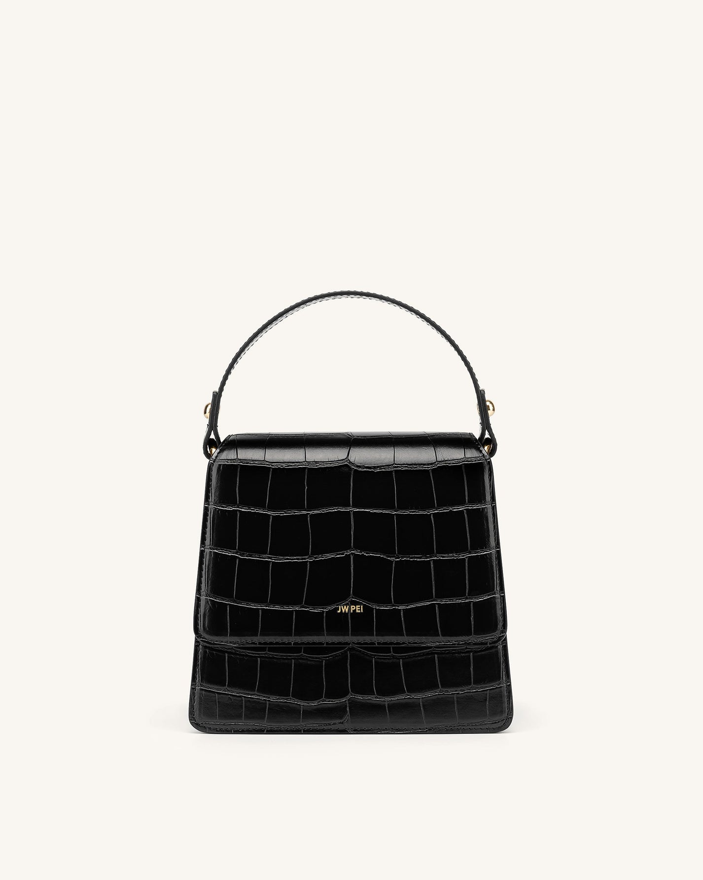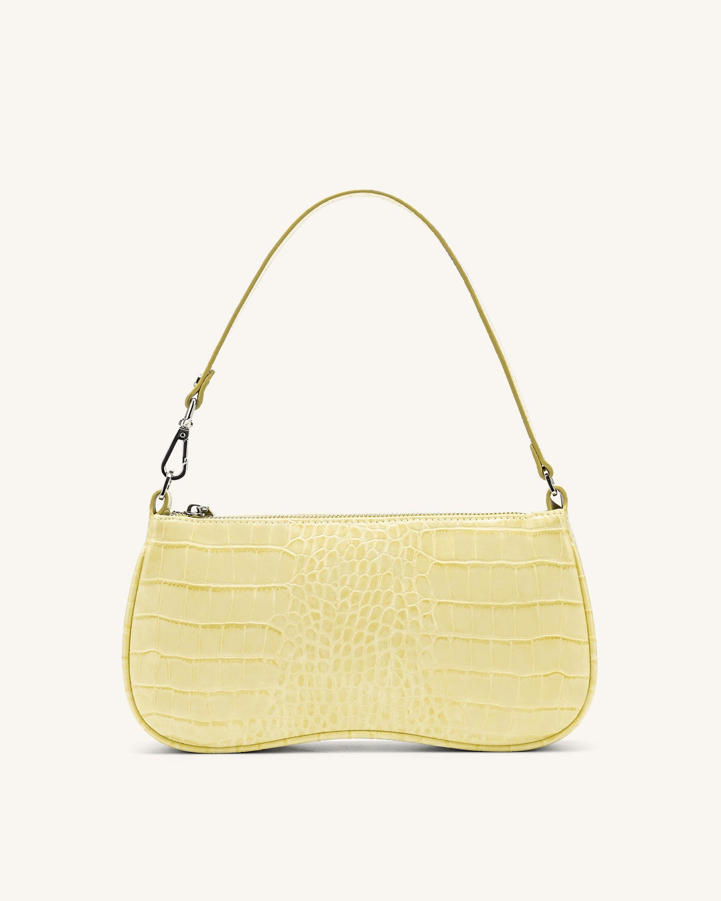 Eva 숄더백- 밝은 노란색 악어 패턴