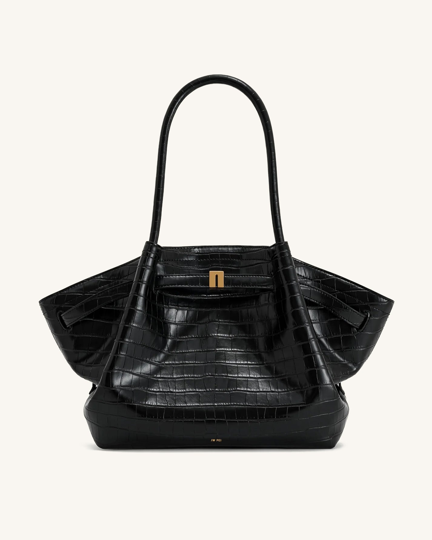 Noor 탑 핸들 백 - 블랙 크로커다일