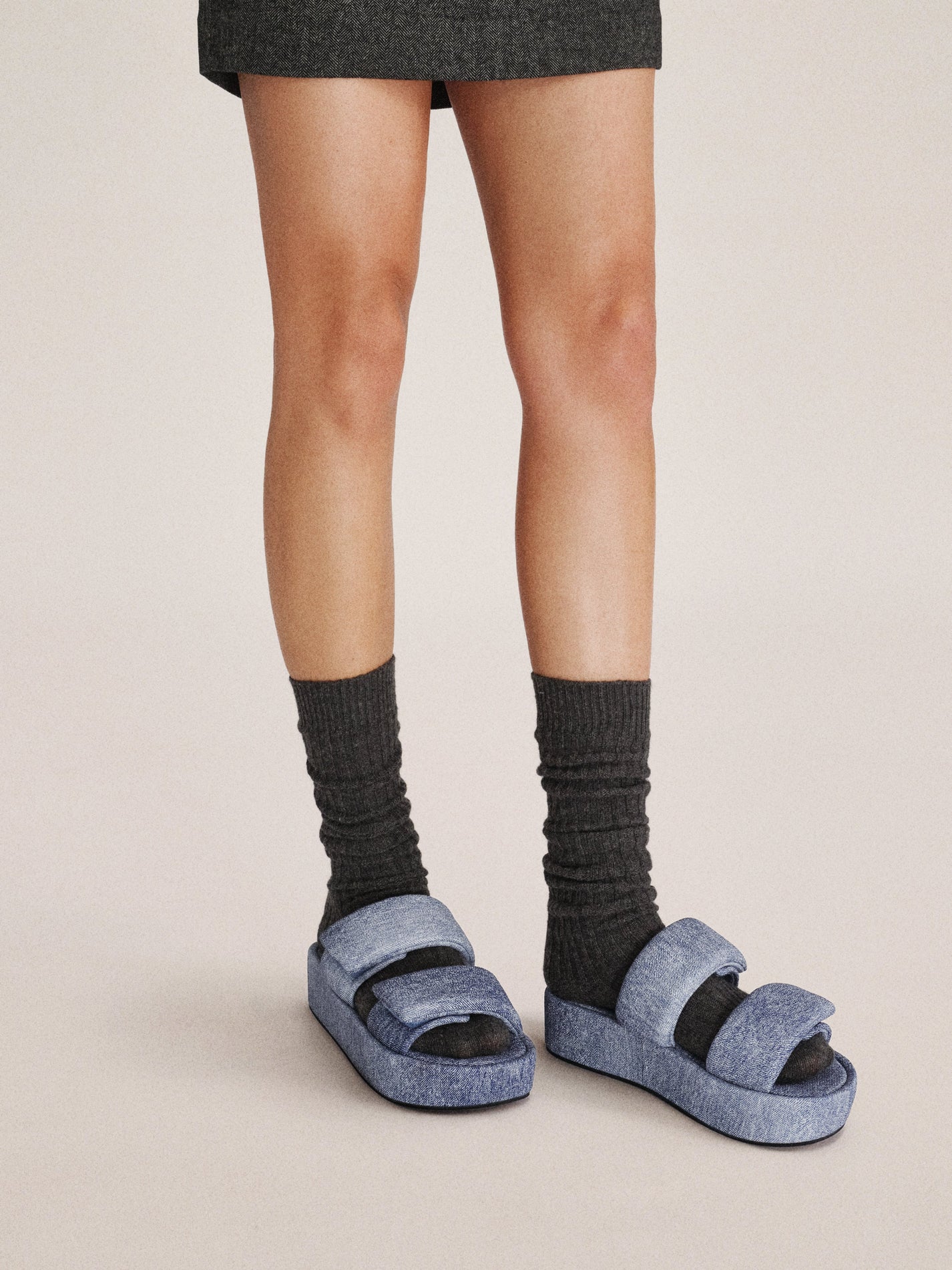 Lexi 인조 모피 플랫폼 샌들 - 베이지