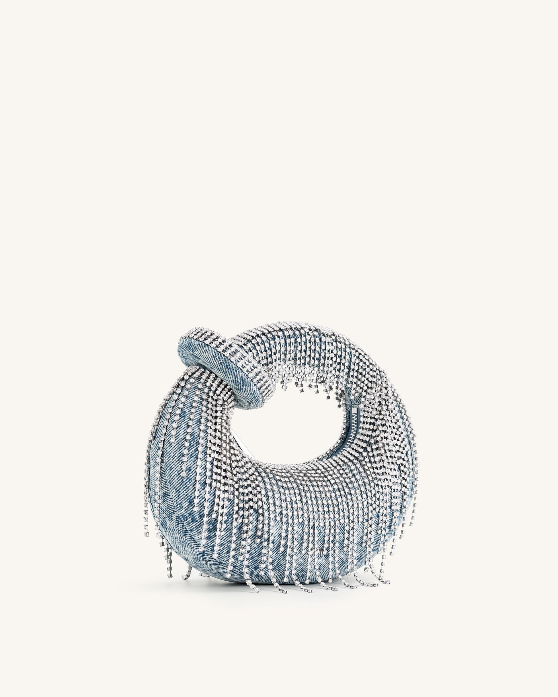 Abacus 데님 인조 크리스탈 미니 탑 핸들백 - 데님블루