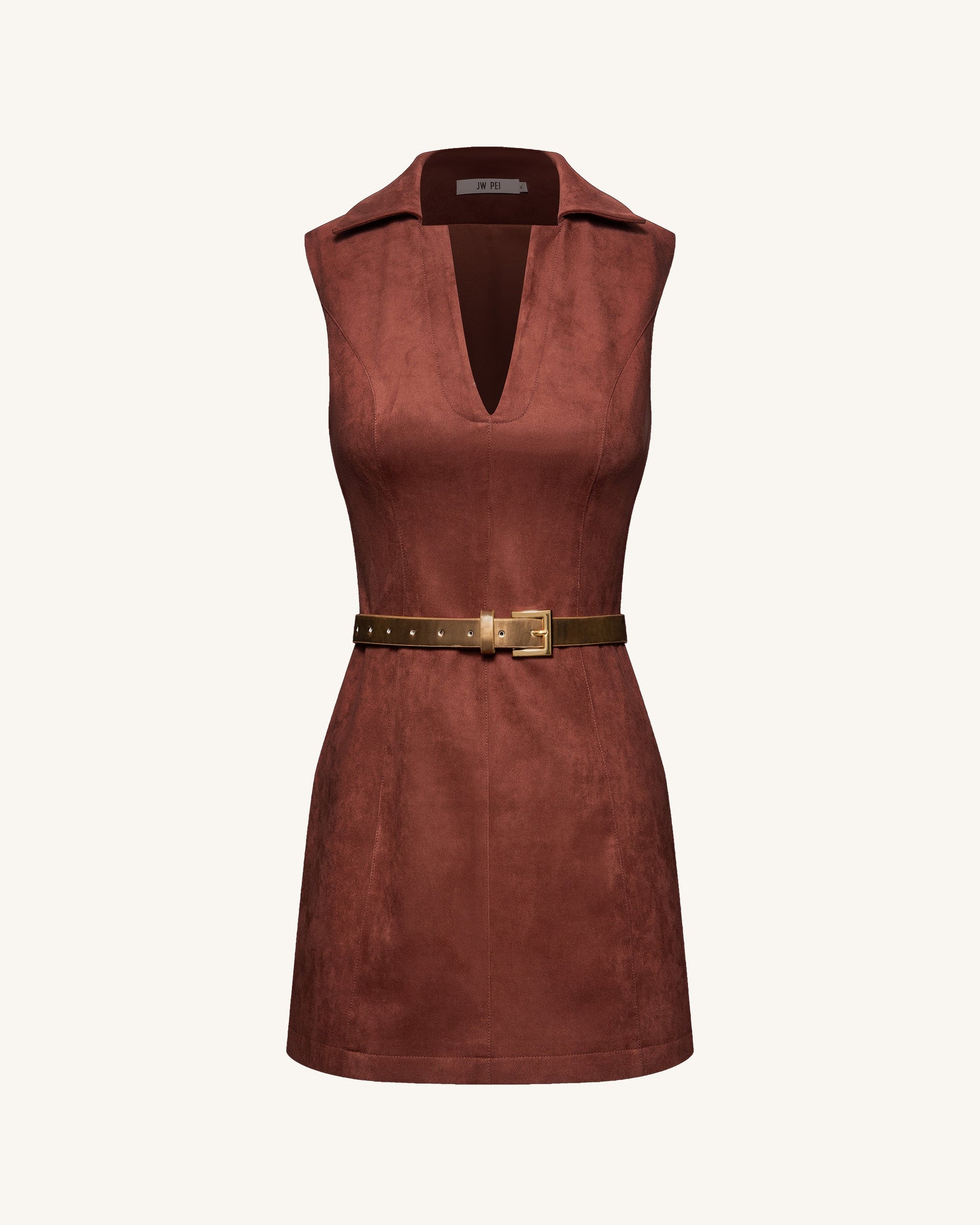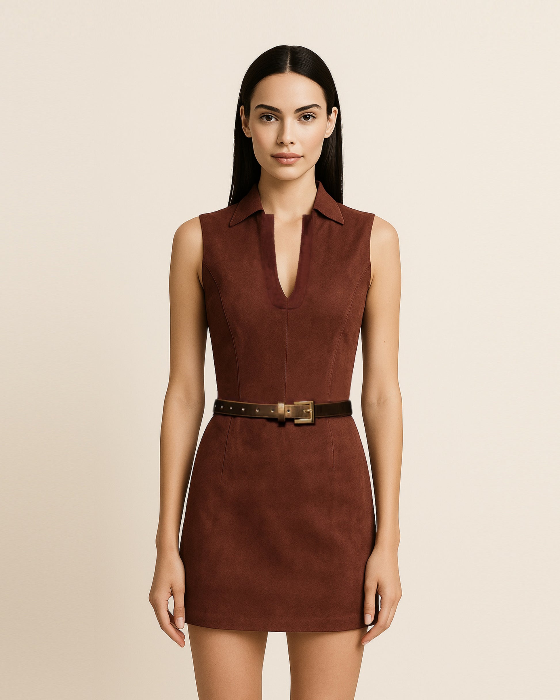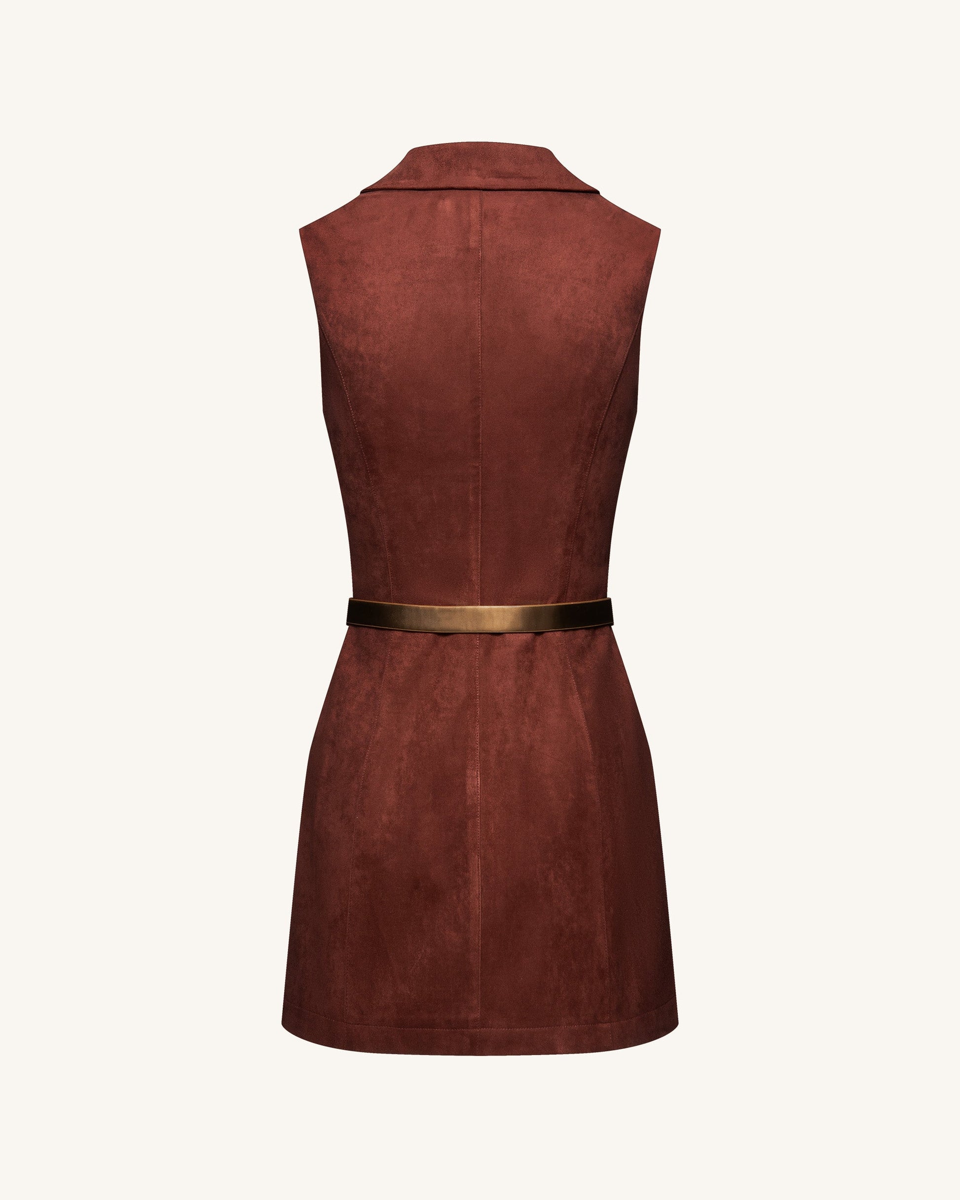 Ariana 무소매 가짜 스웨이드 미니 드레스 - 버건디