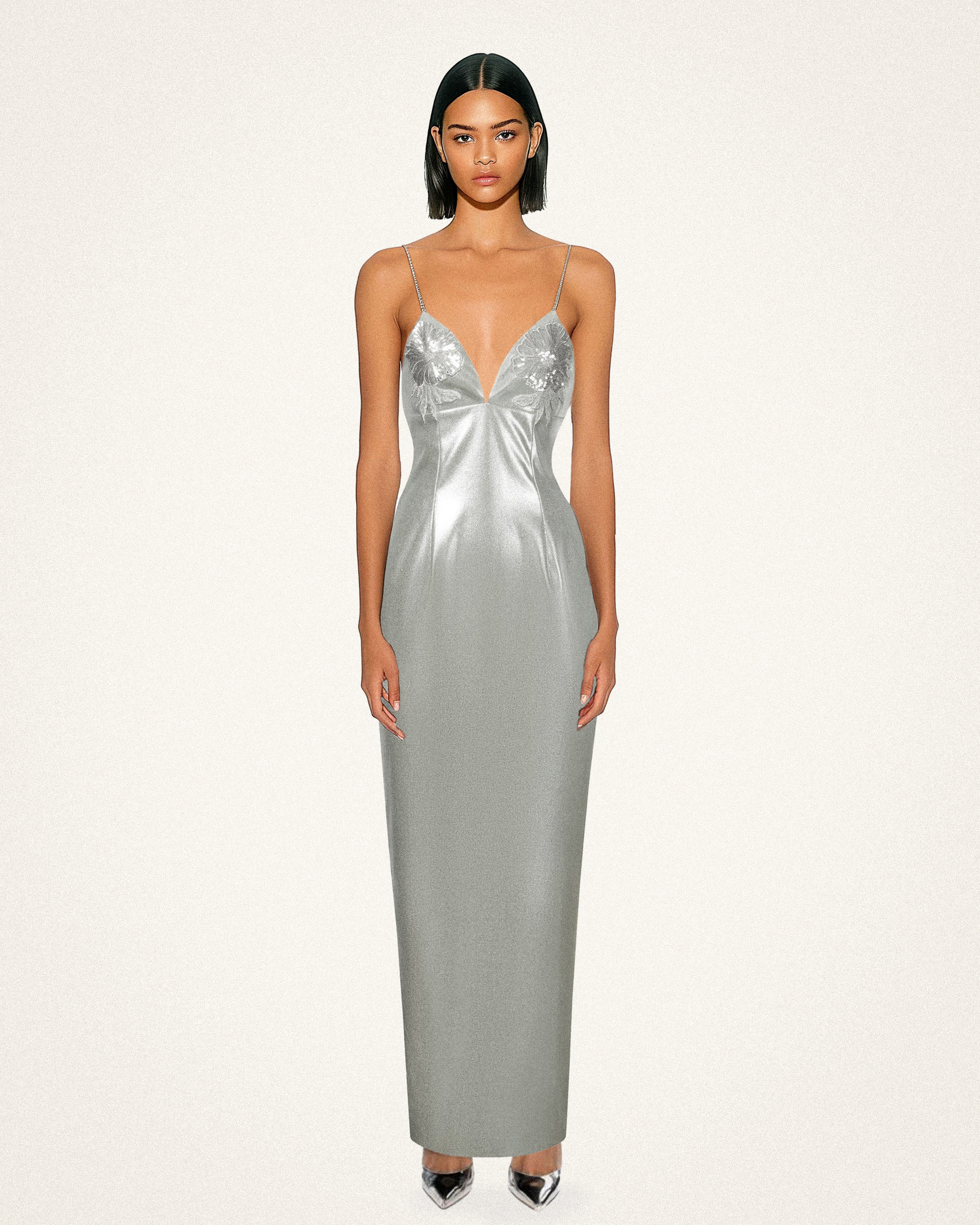 Ayliua 스위트하트 넥라인 라인스톤 장식 실버 롱 드레스 - 실버