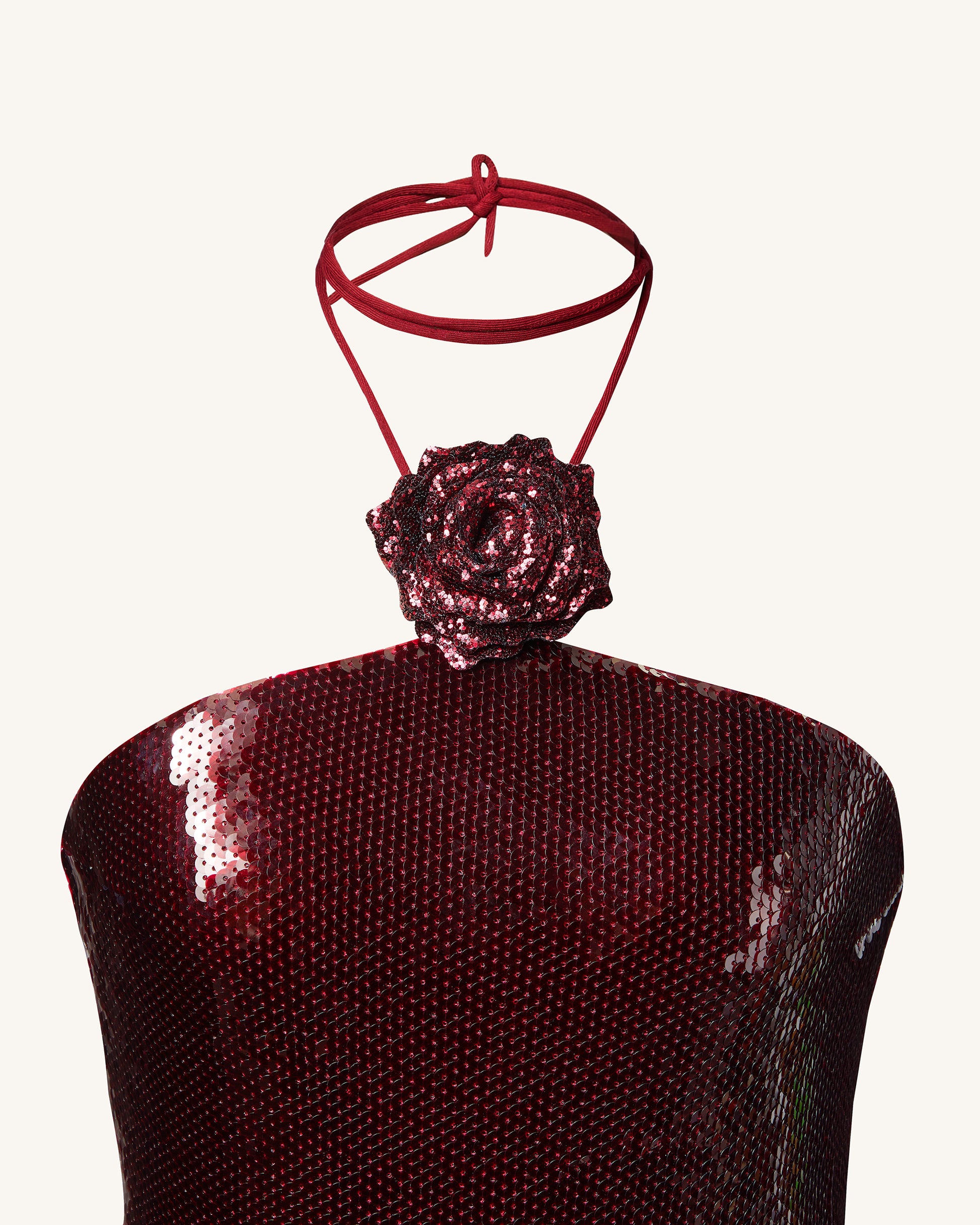Burgundy 시퀸 홀터 미니 드레스 - 와인 빛