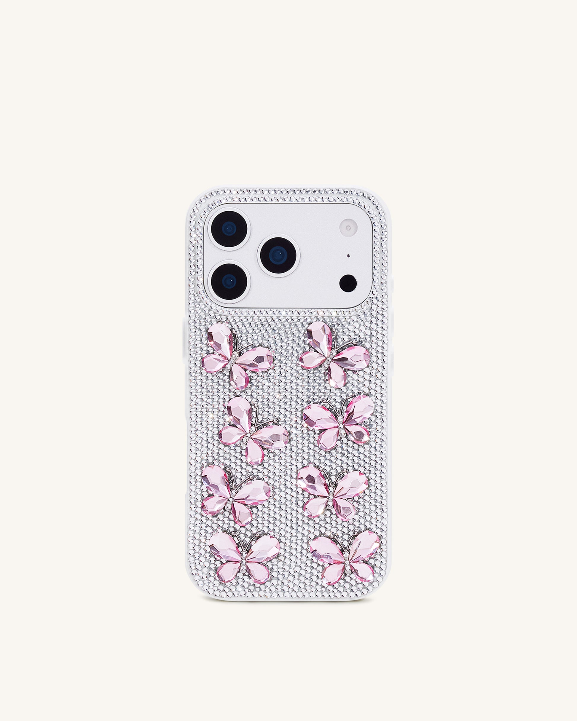 나비 크리스탈 휴대폰 케이스 - 화이트