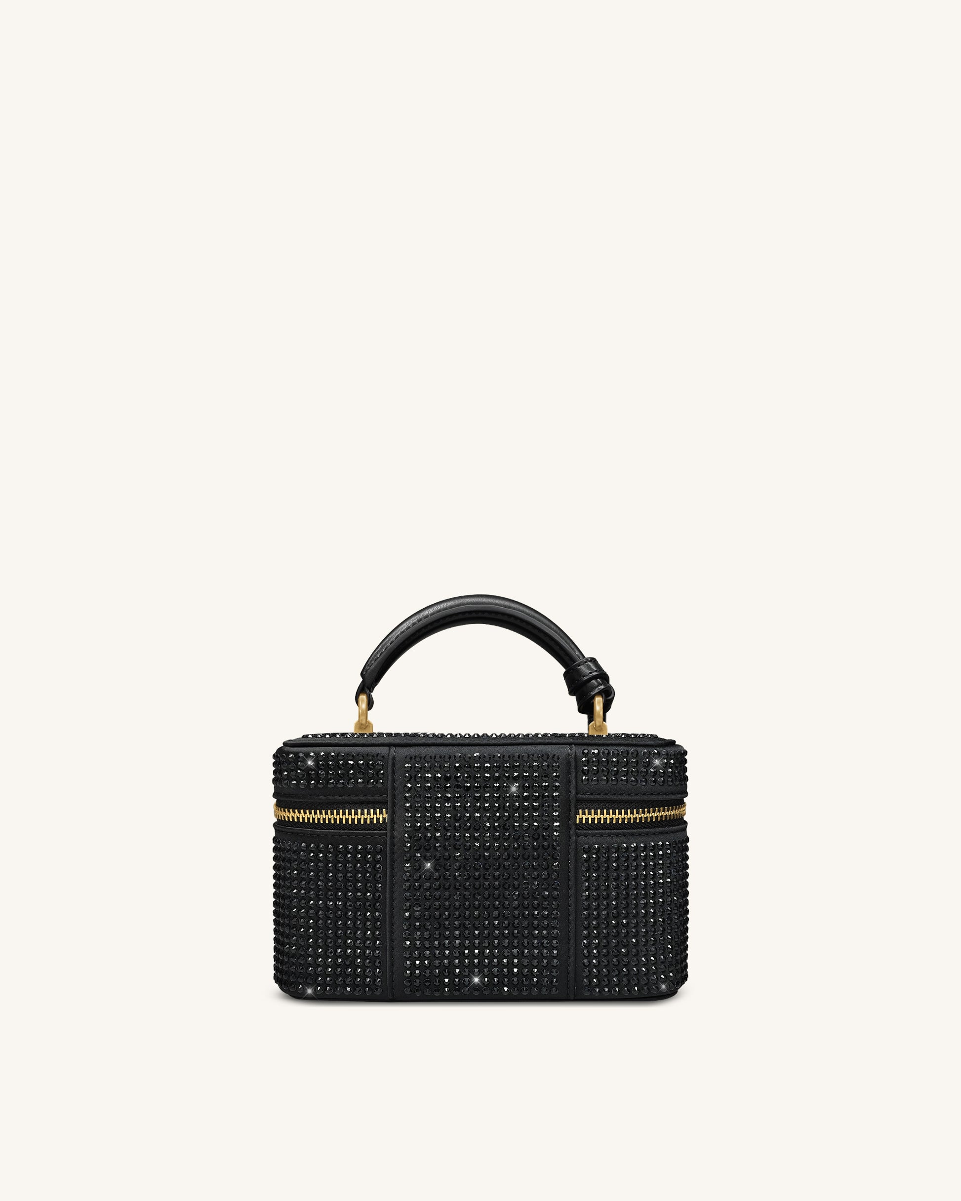 Cleo 인조 크리스탈 박스 쉐입 탑 핸들 백 - 블랙