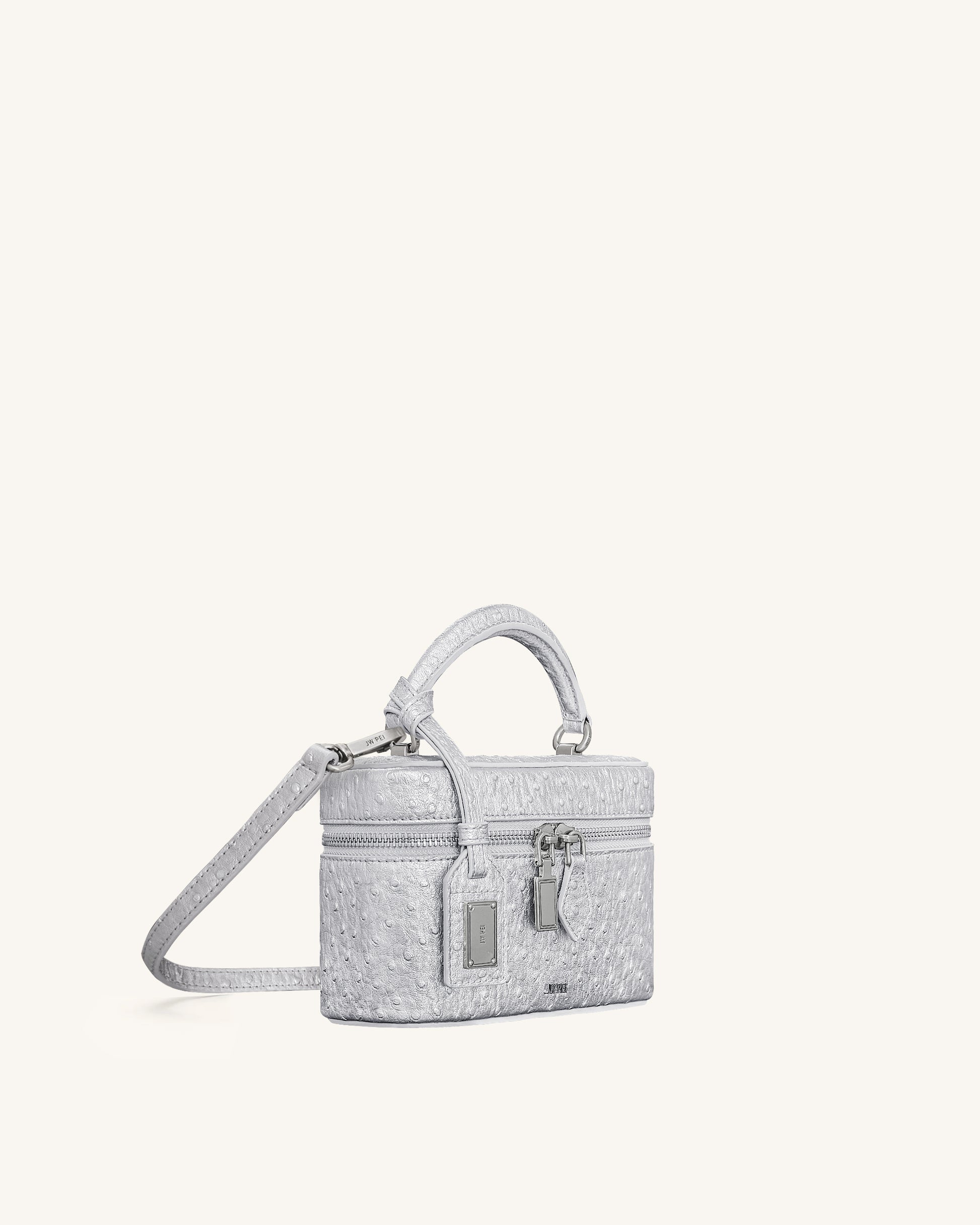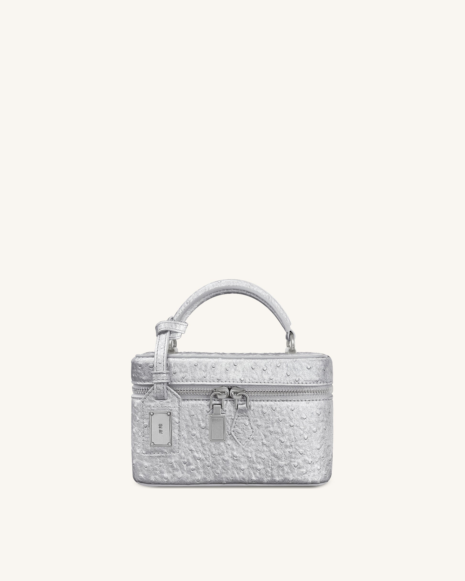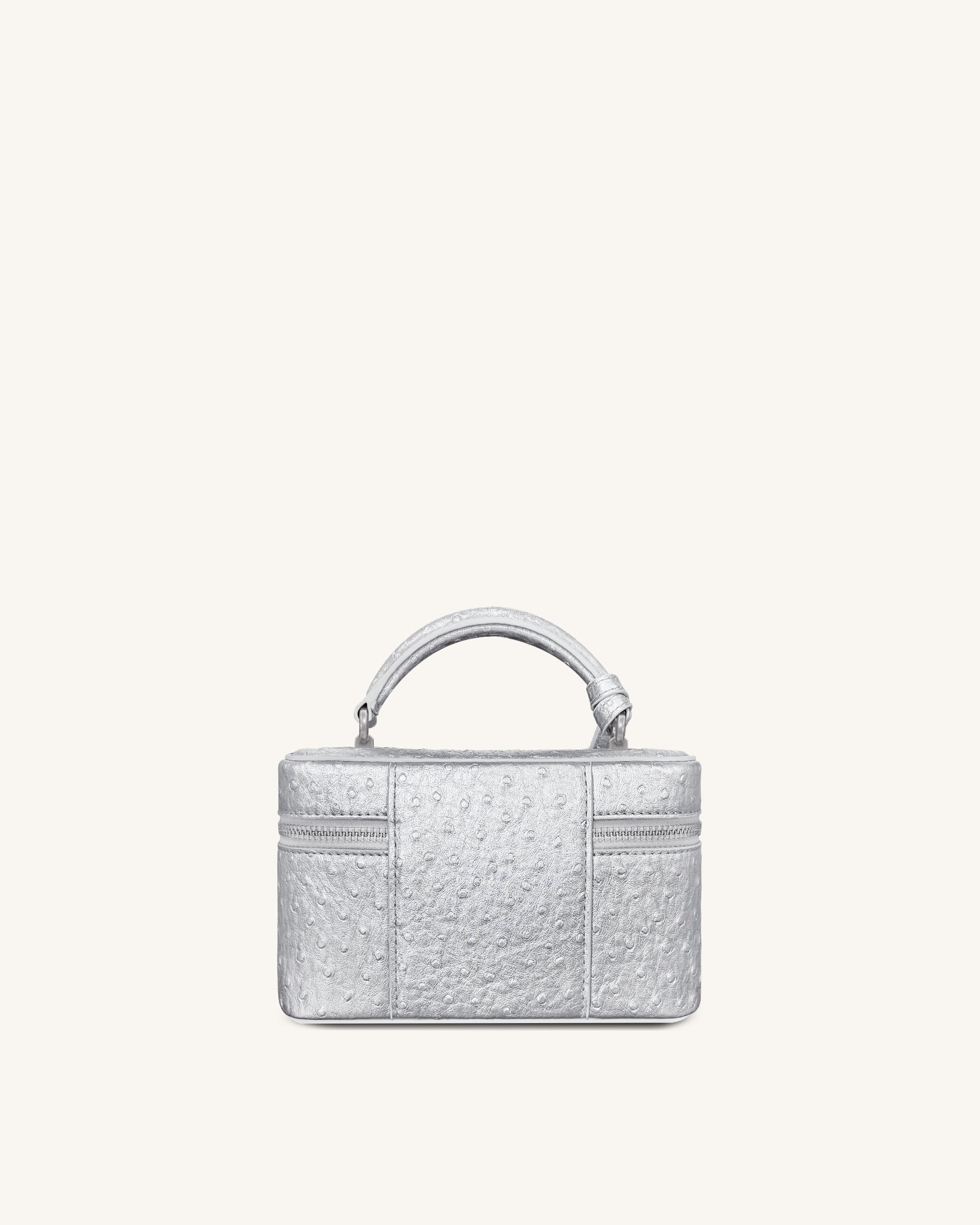 Cleo 페이크 오스트리치 텍스처 박스 쉐입 탑 핸들 백 - 실버