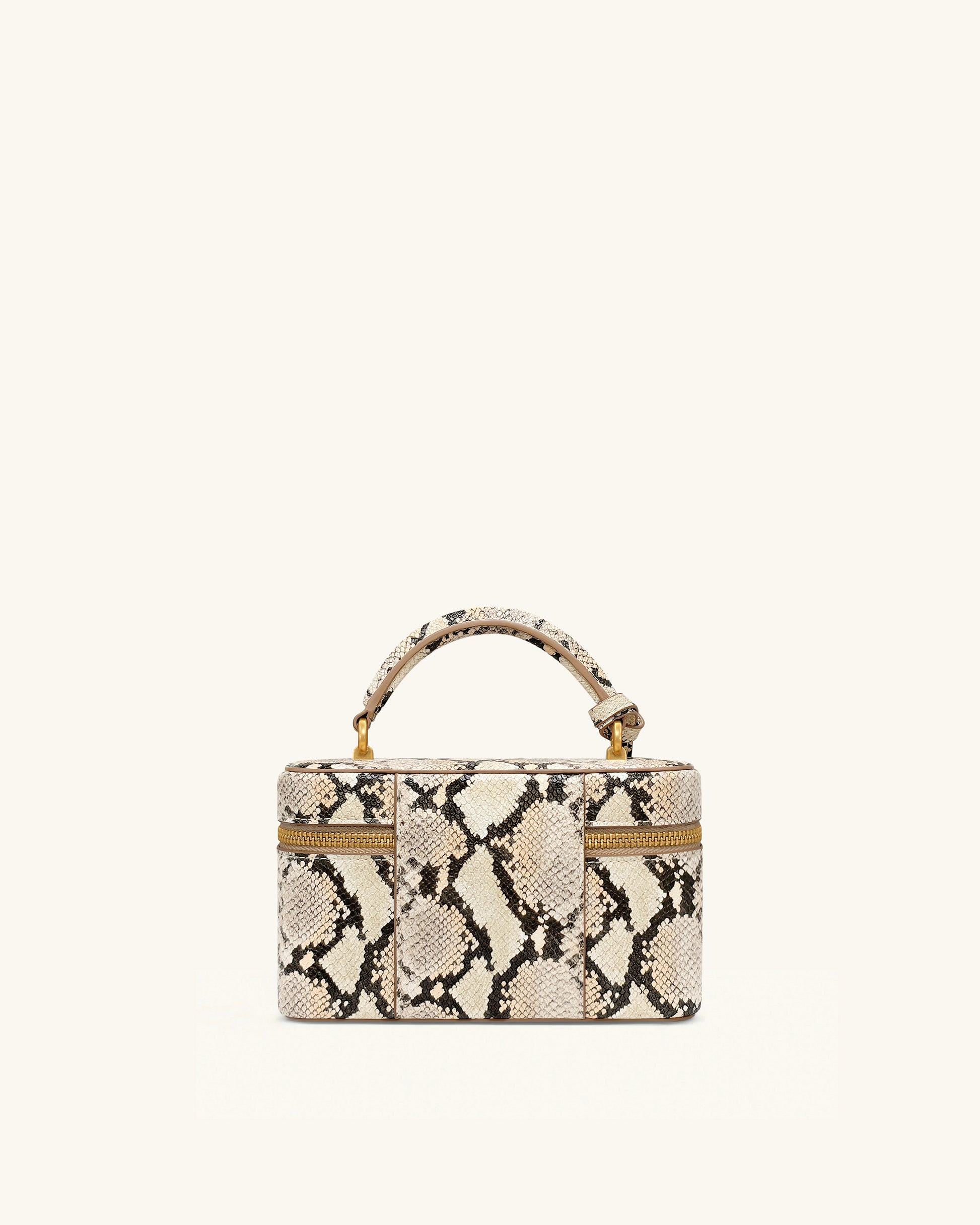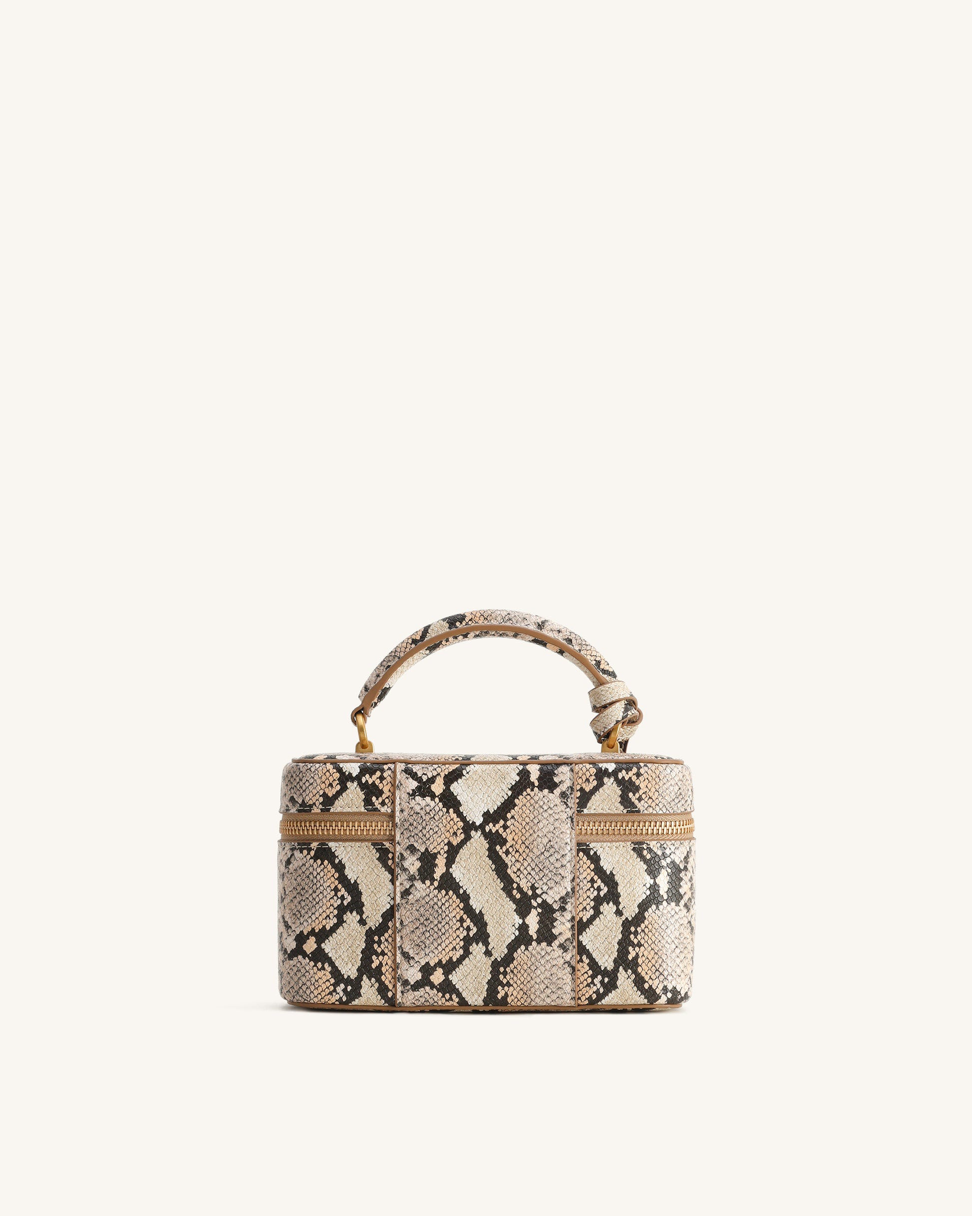 Cleo 스네이크 엠보스 박스 쉐입 탑 핸들 백 - 베이지