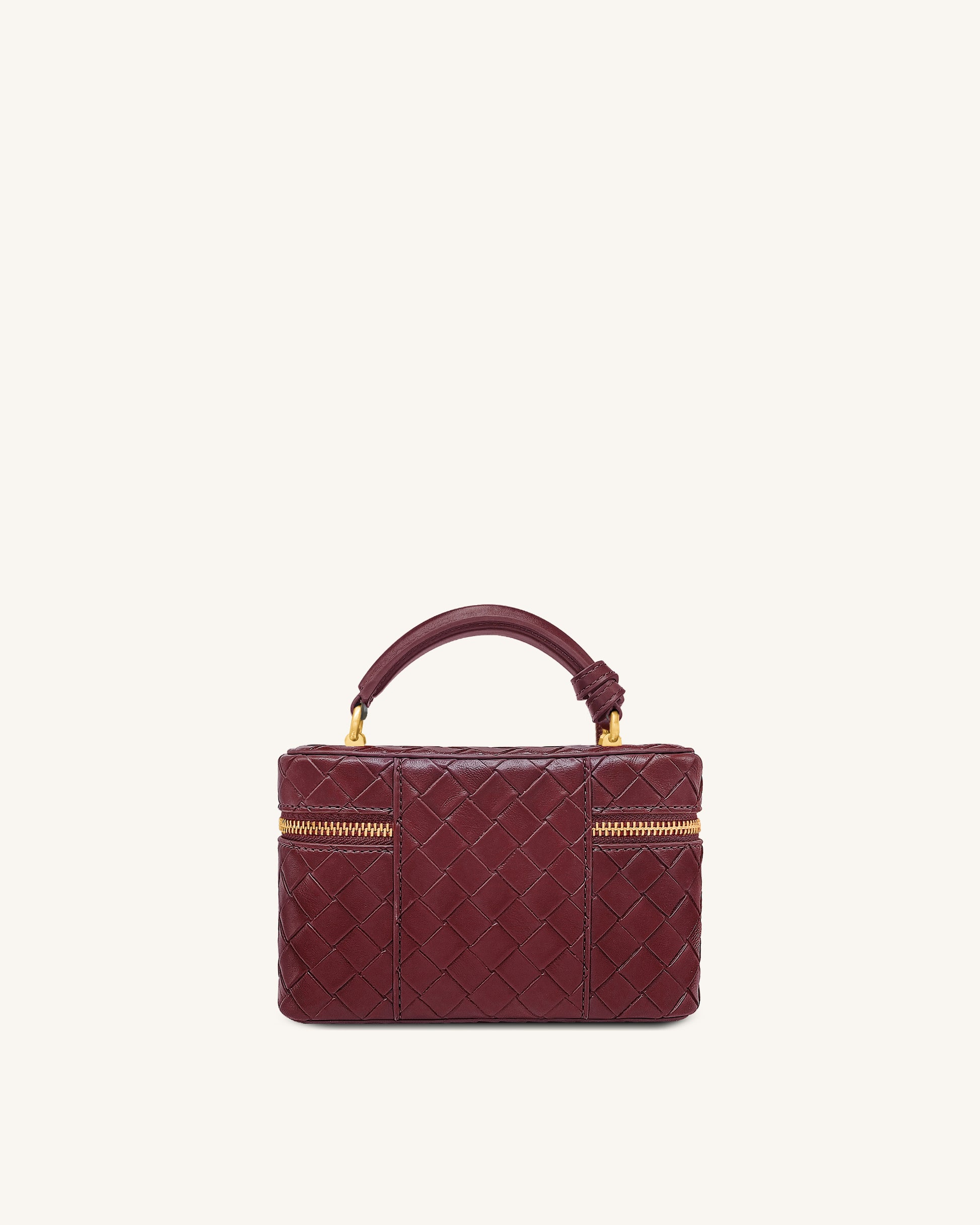 Cleo 우븐 텍스처 박스 쉐입 탑 핸들 백 - 클라렛