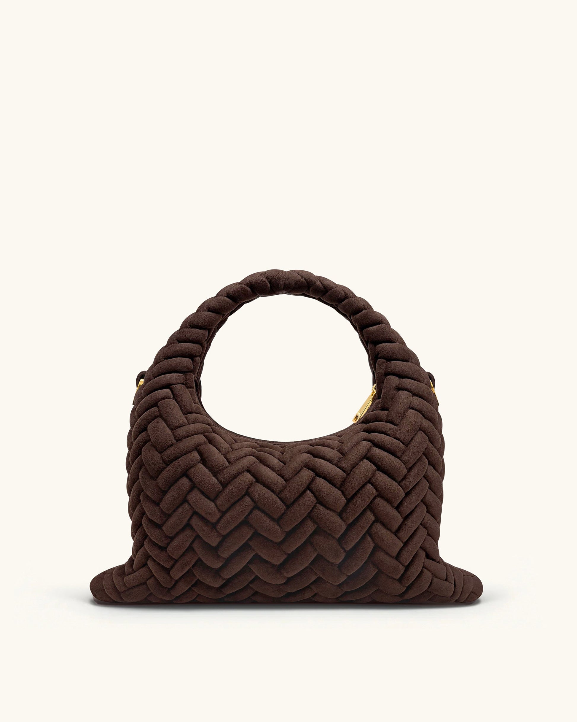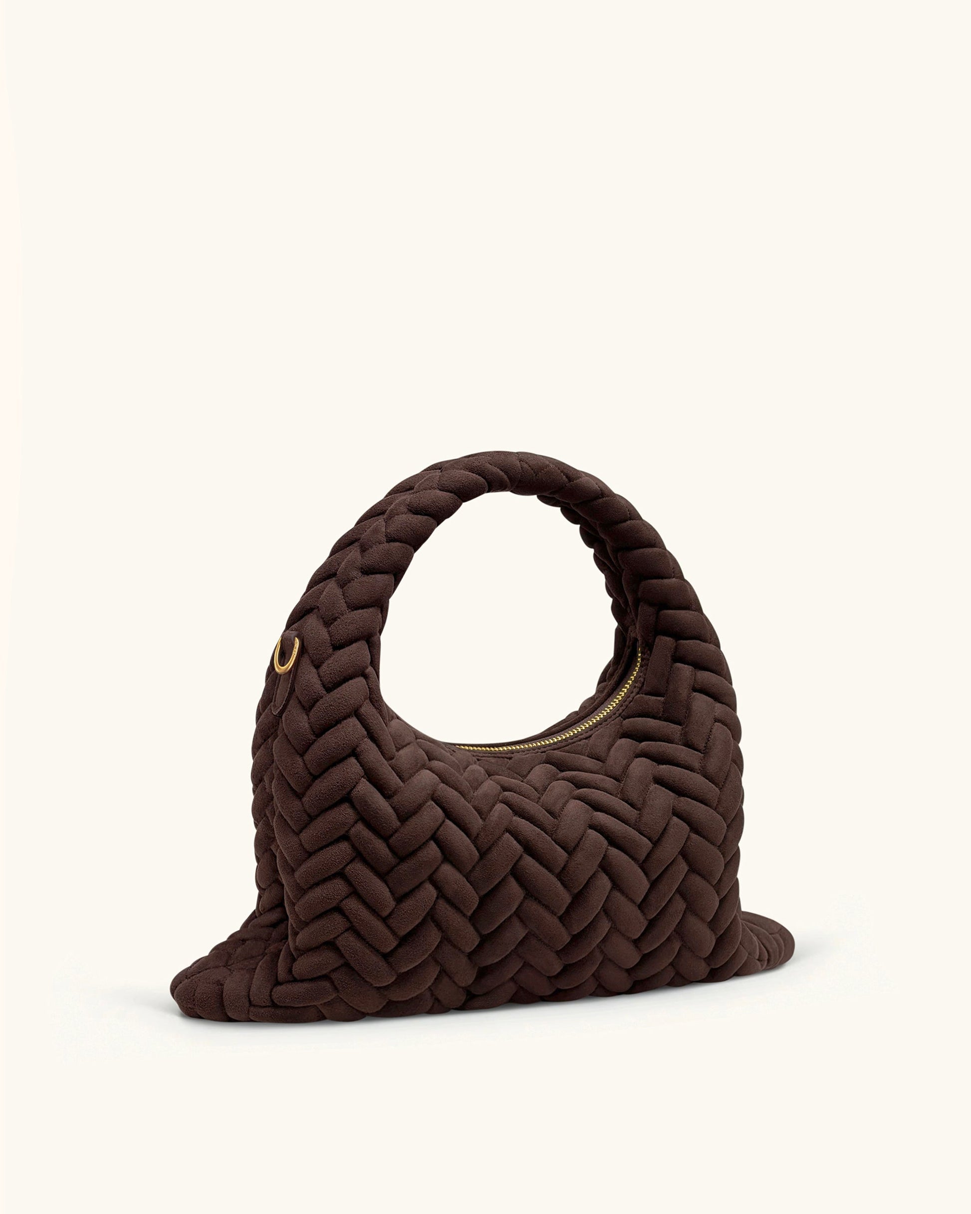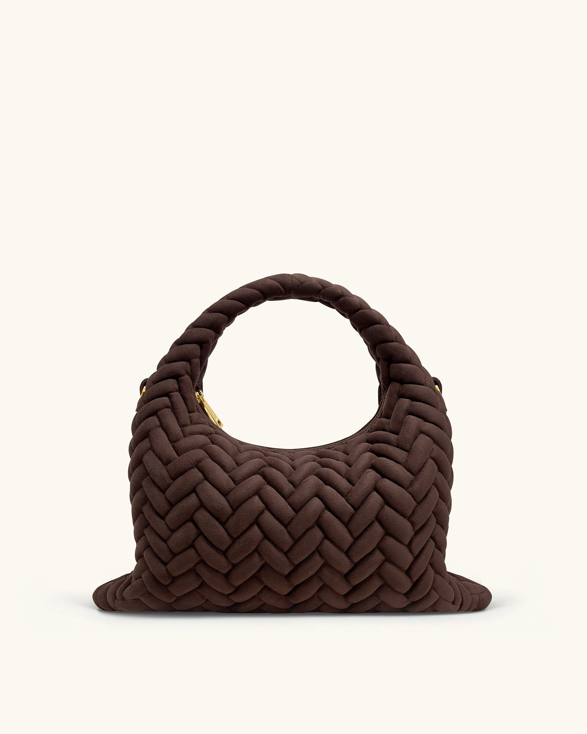 Cora 인조 스웨이드 퀼팅 핸들 가방 - 다크 브라운