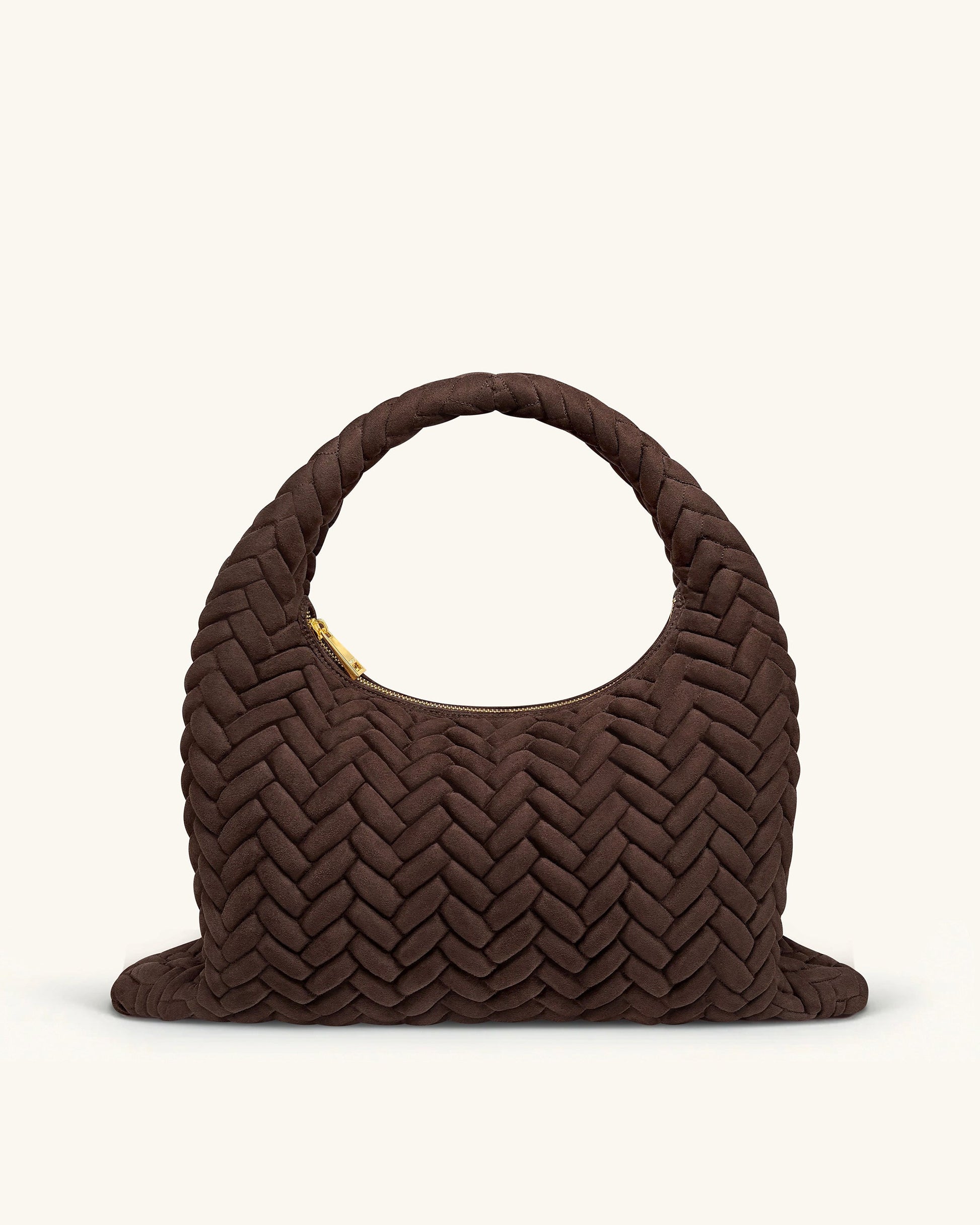Cora 라지 인조 스웨이드 퀼팅 호보 숄더백 - 다크 브라운