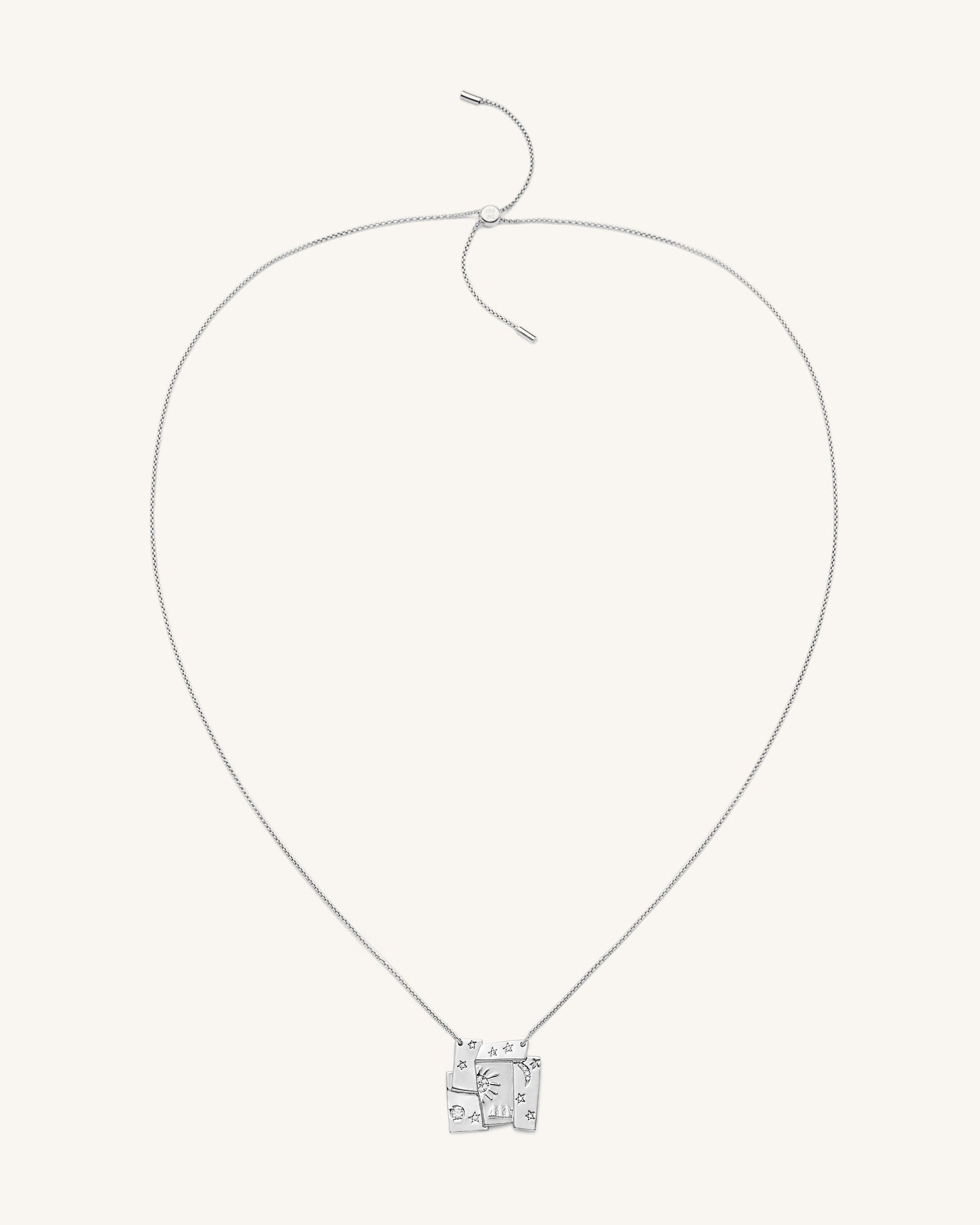 Cosmos 콤비네이션 네크리스 - 18 화이트 골드 도금 & 화이트 지르콘