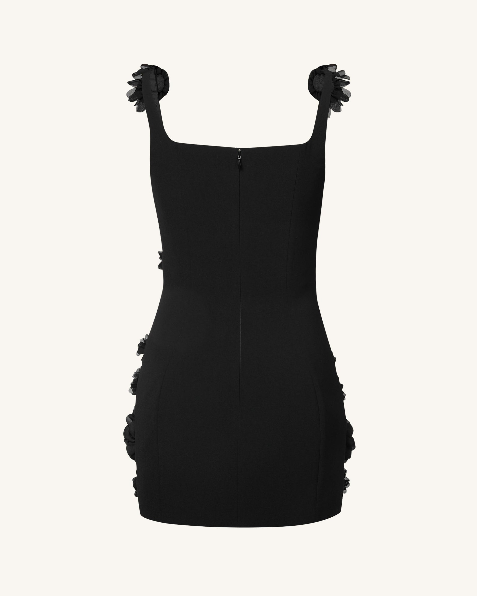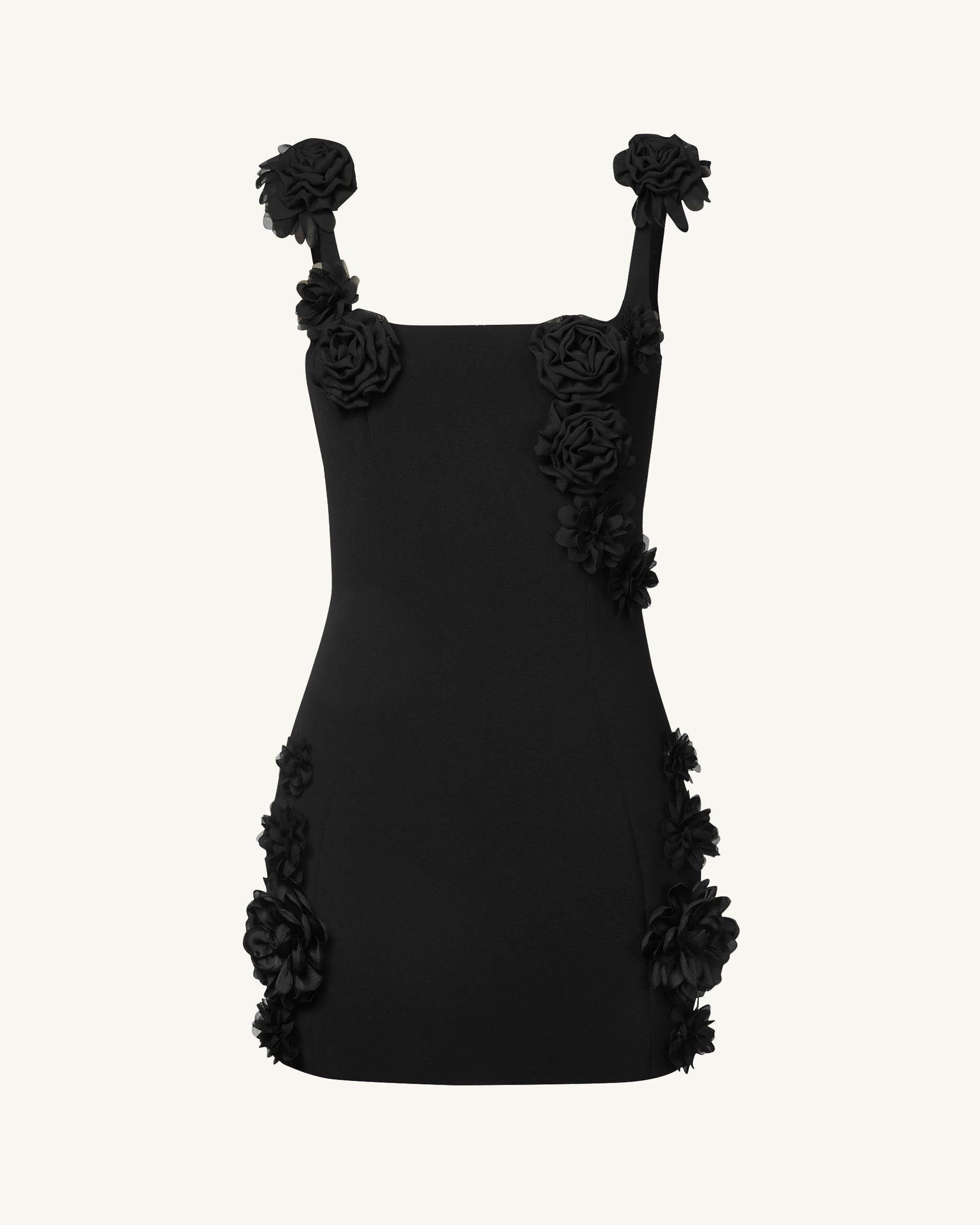 Elaina 블랙 로젯 애플리케 미니 드레스 - 블랙