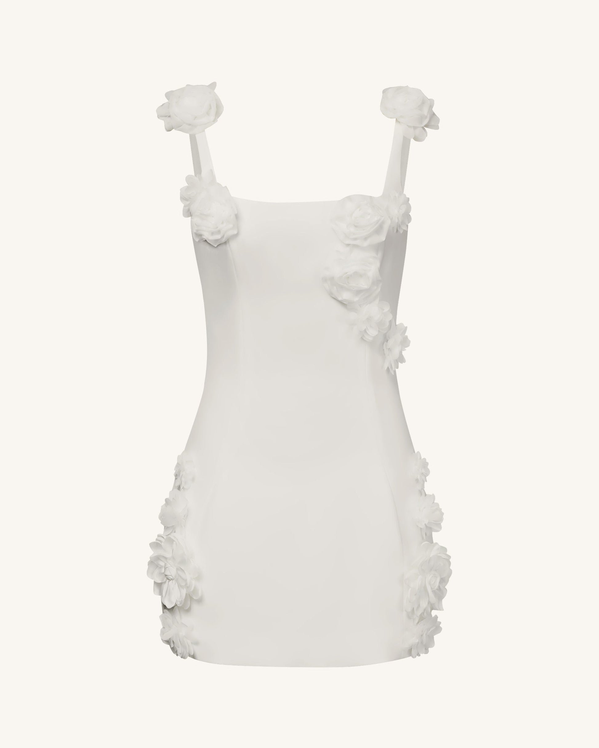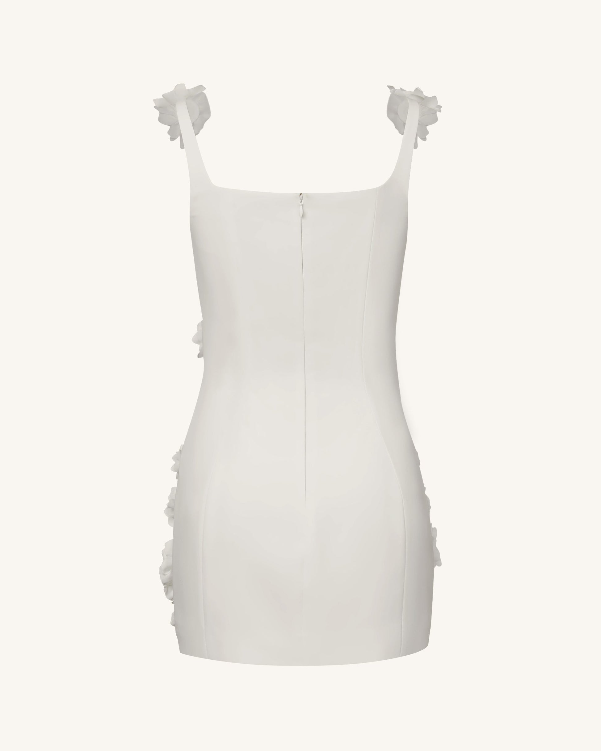 Elaina 화이트 로제트 애플리케 미니 드레스 - 화이트