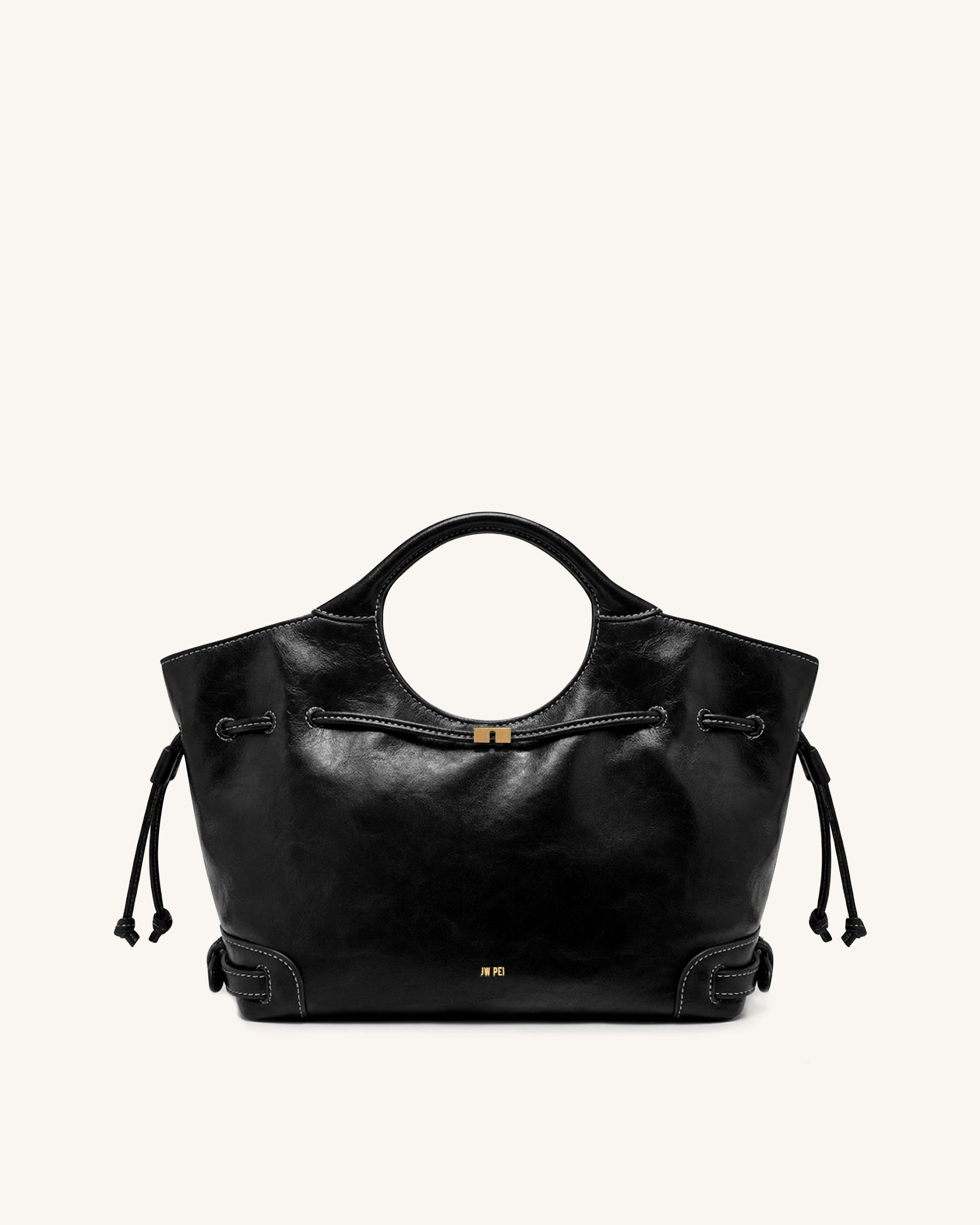 Elara 왁스드 비건 레더 드로스트링 토트백 - 블랙