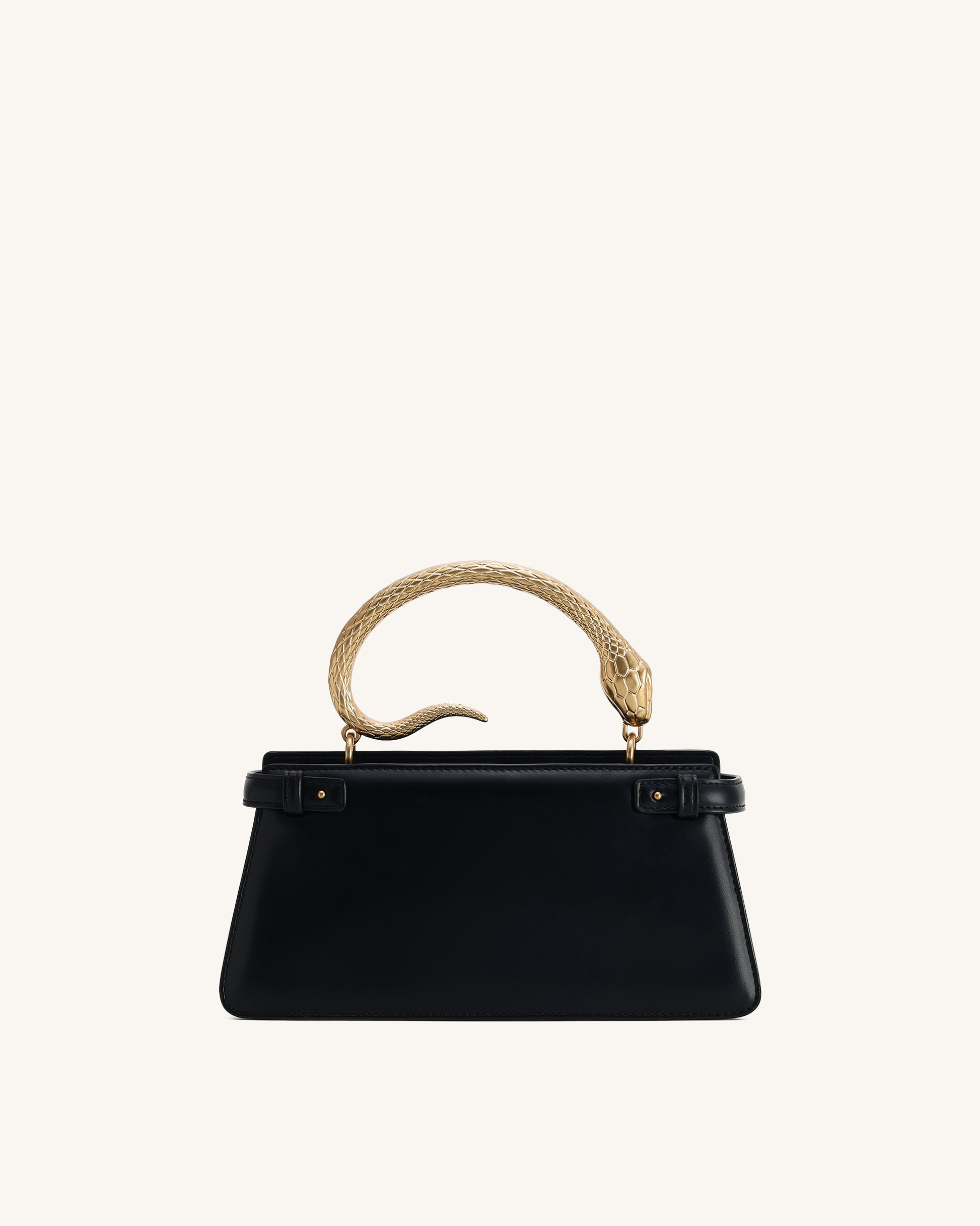 Elena 스네이크 핸들 탑 핸들 가방 - 블랙