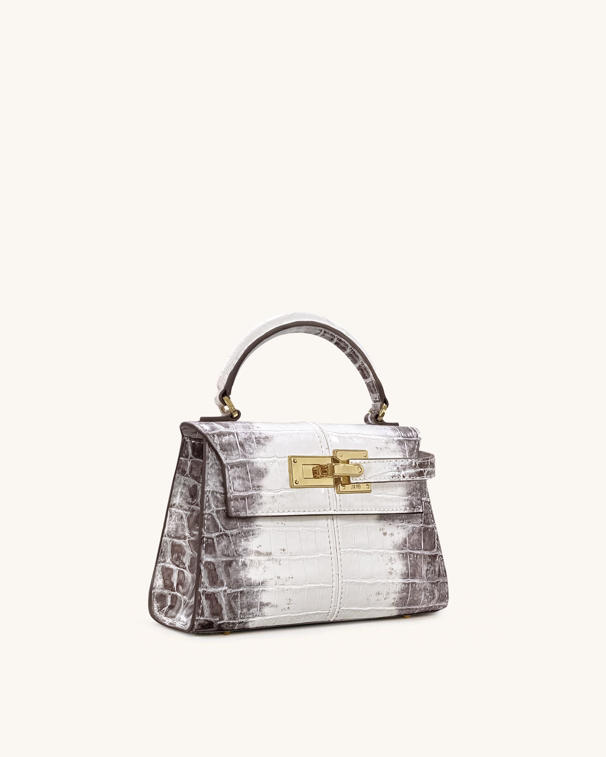 Elise 탑 핸들 백 - 화이트 크로커다일