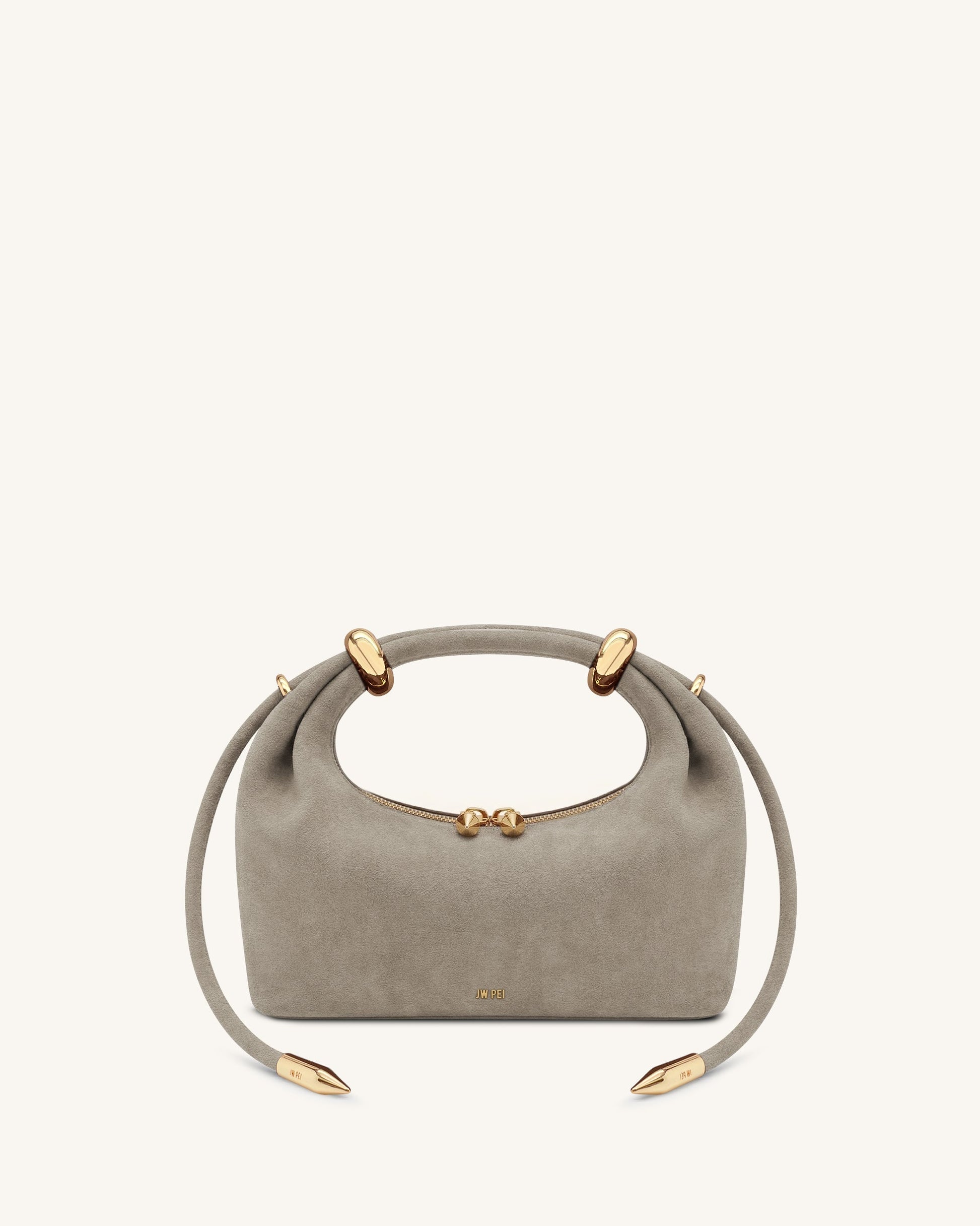 Ellie 인조 스웨이드 메탈 링 장식 탑 핸들 백 - 그레이