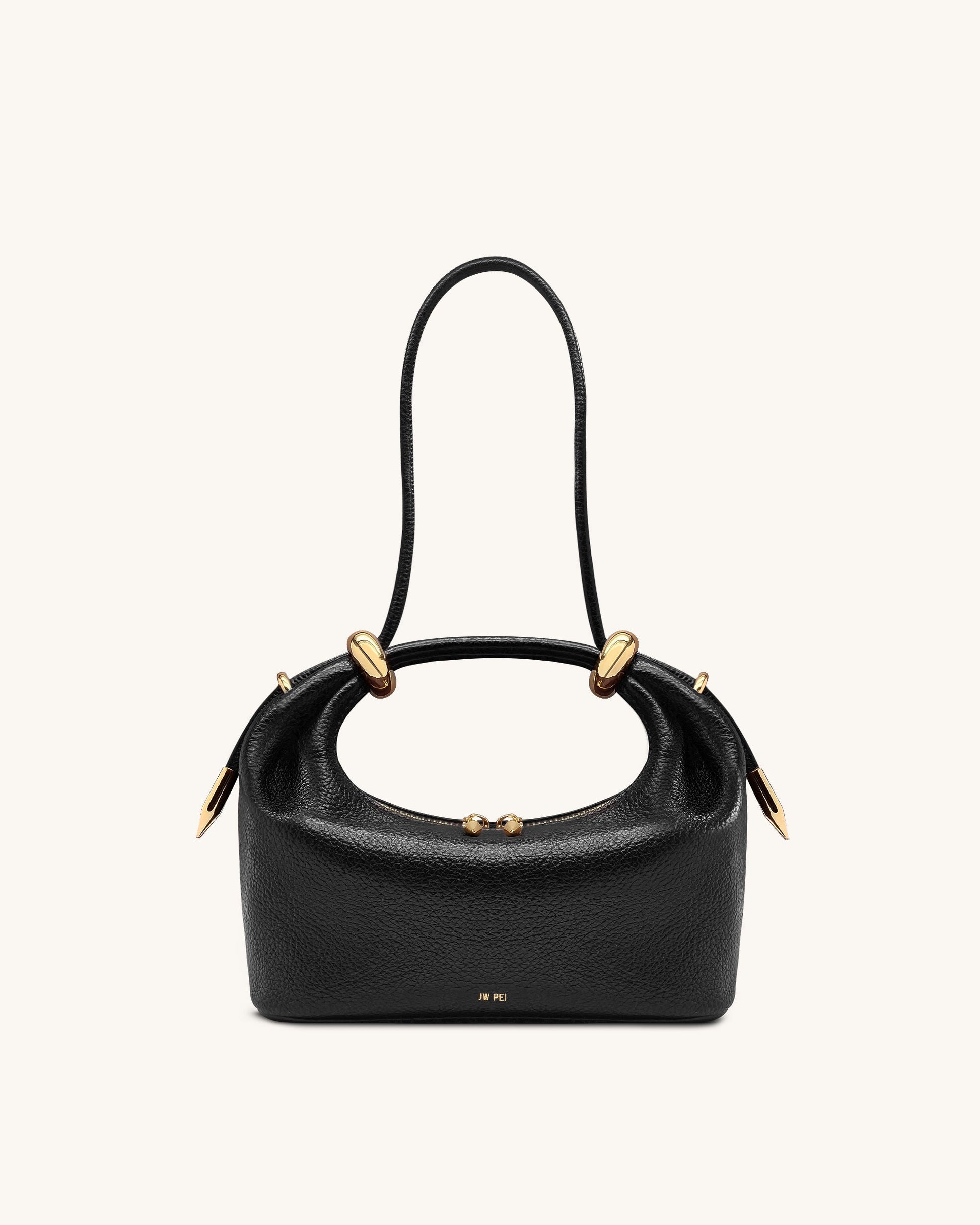 Ellie 메탈 링 장식 탑 핸들 가방 - 블랙