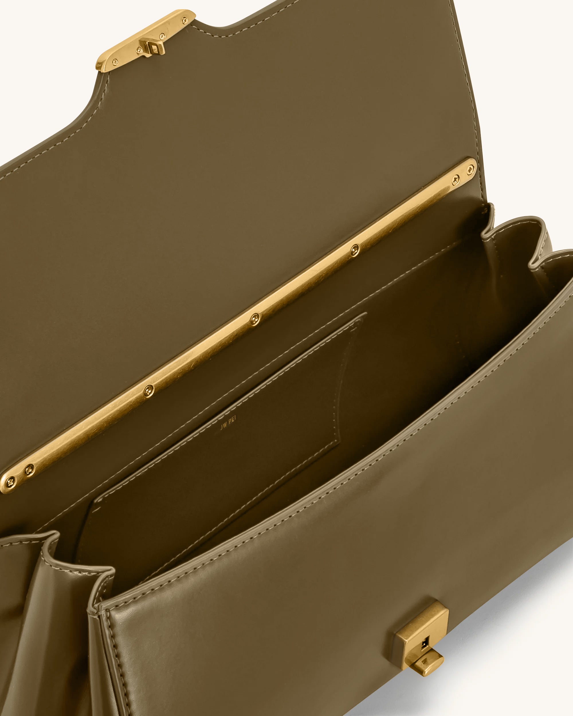 광택 있고 세련되며 모던한 디자인입니다. 골드 하드웨어와 클래식한 싱글 숄더 스트랩이 특징입니다. 필수품과 대형 휴대폰을 수납할 수 있을 만큼 넉넉합니다.