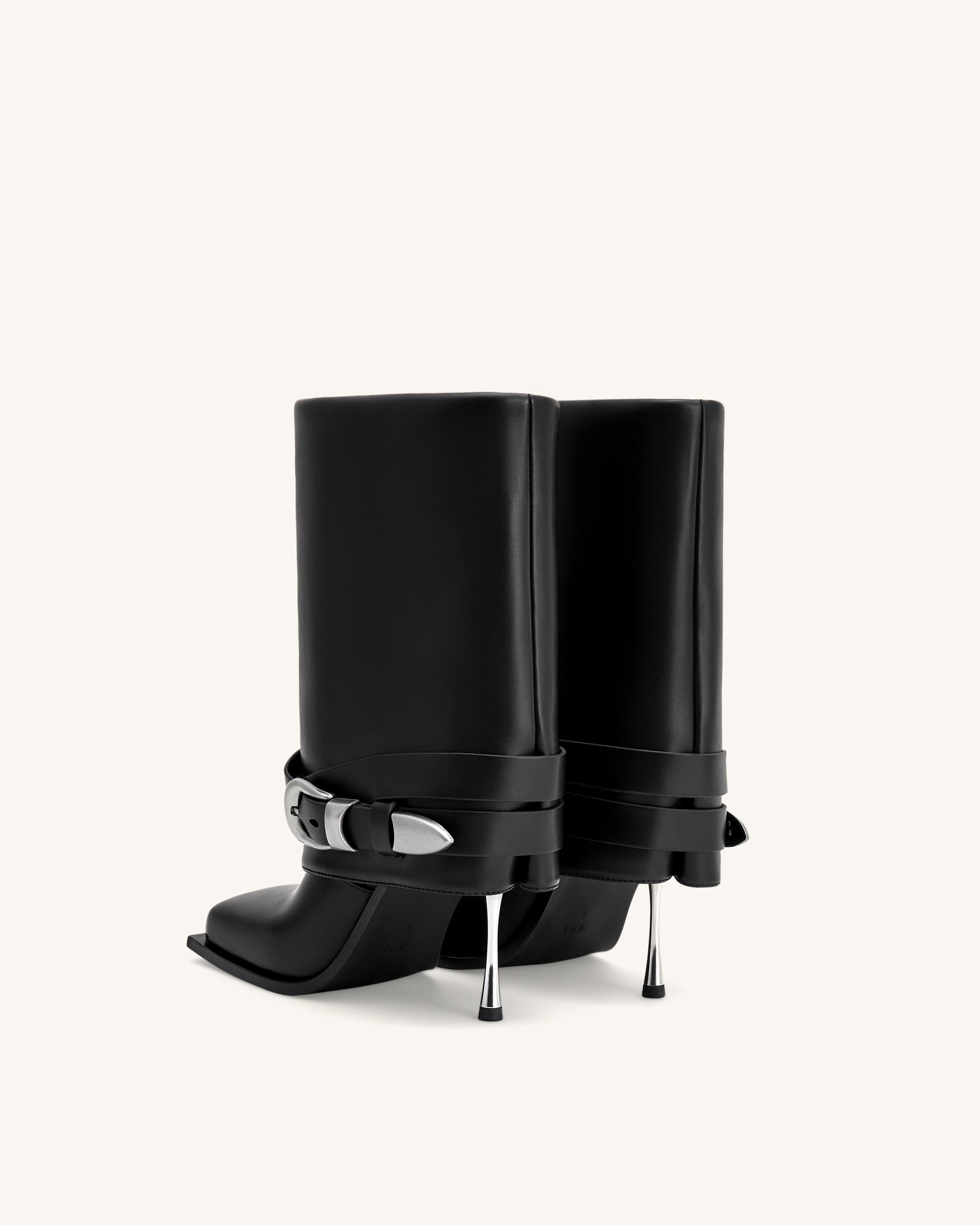 Emilia 웨스턴 버클 가죽 스틸레토 부츠 - 블랙