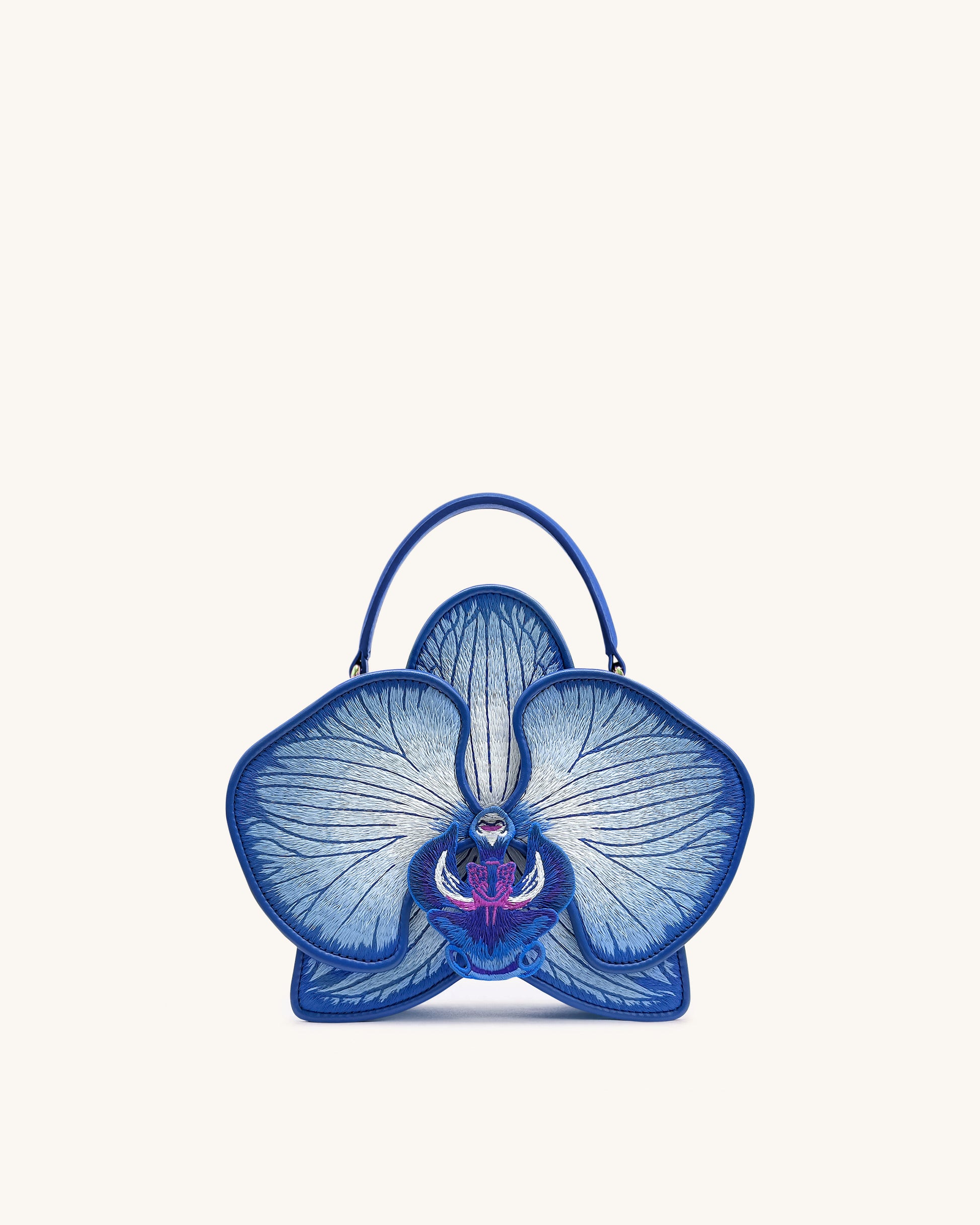 이 핸드백은 생동감 있는 파란색 난초 꽃 실루엣을 독특하게 표현했으며, 섬세한 자수로 꽃잎의 질감을 강조했습니다. 견고한 탑 핸들 디자인으로 예술적 감각과 실용적 우아함을 동시에 갖춰, 어떤 자리에서도 눈길을 끄는 스테이트먼트 아이템이 됩니다.
