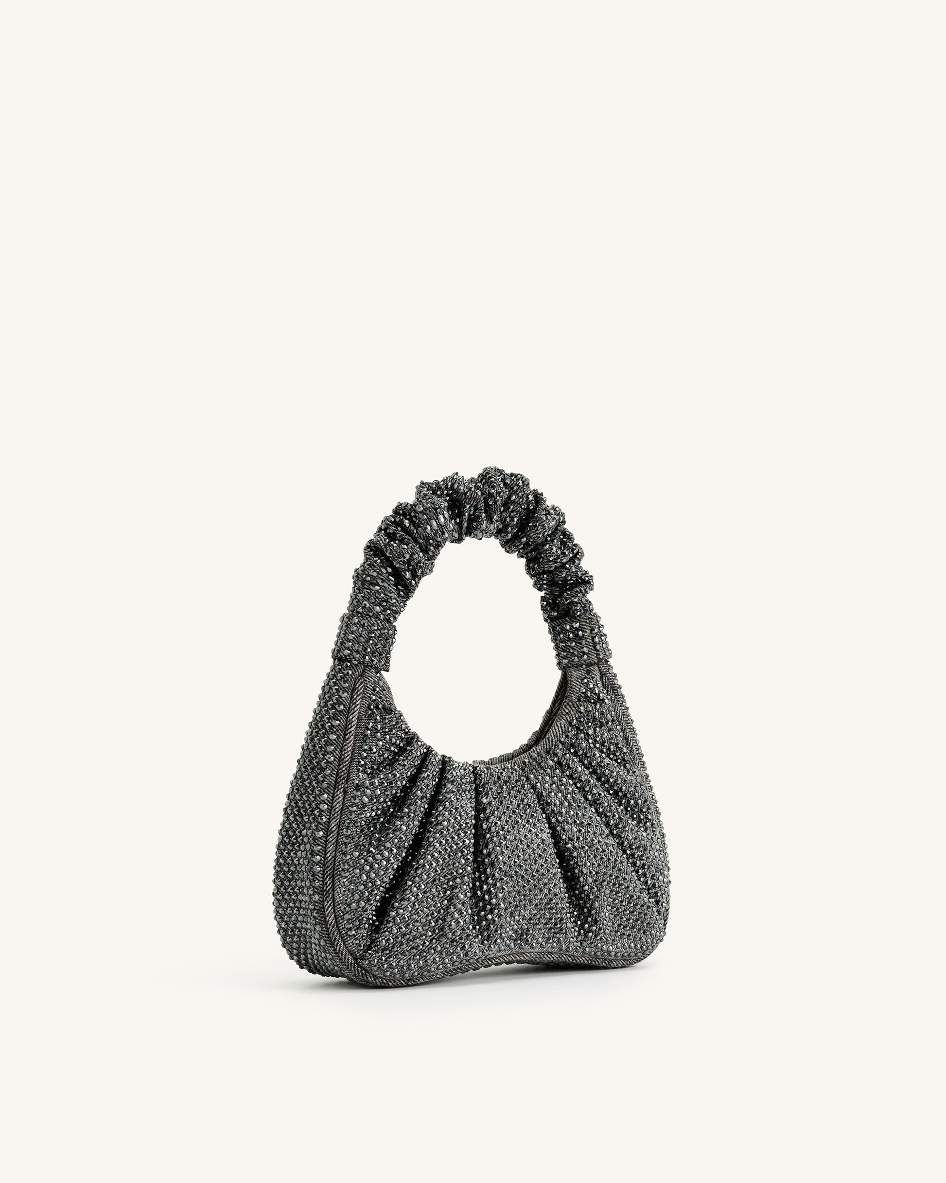 Gabbi 인공 크리스탈 미디엄 러쉬드 호보 핸드백 - 진회색