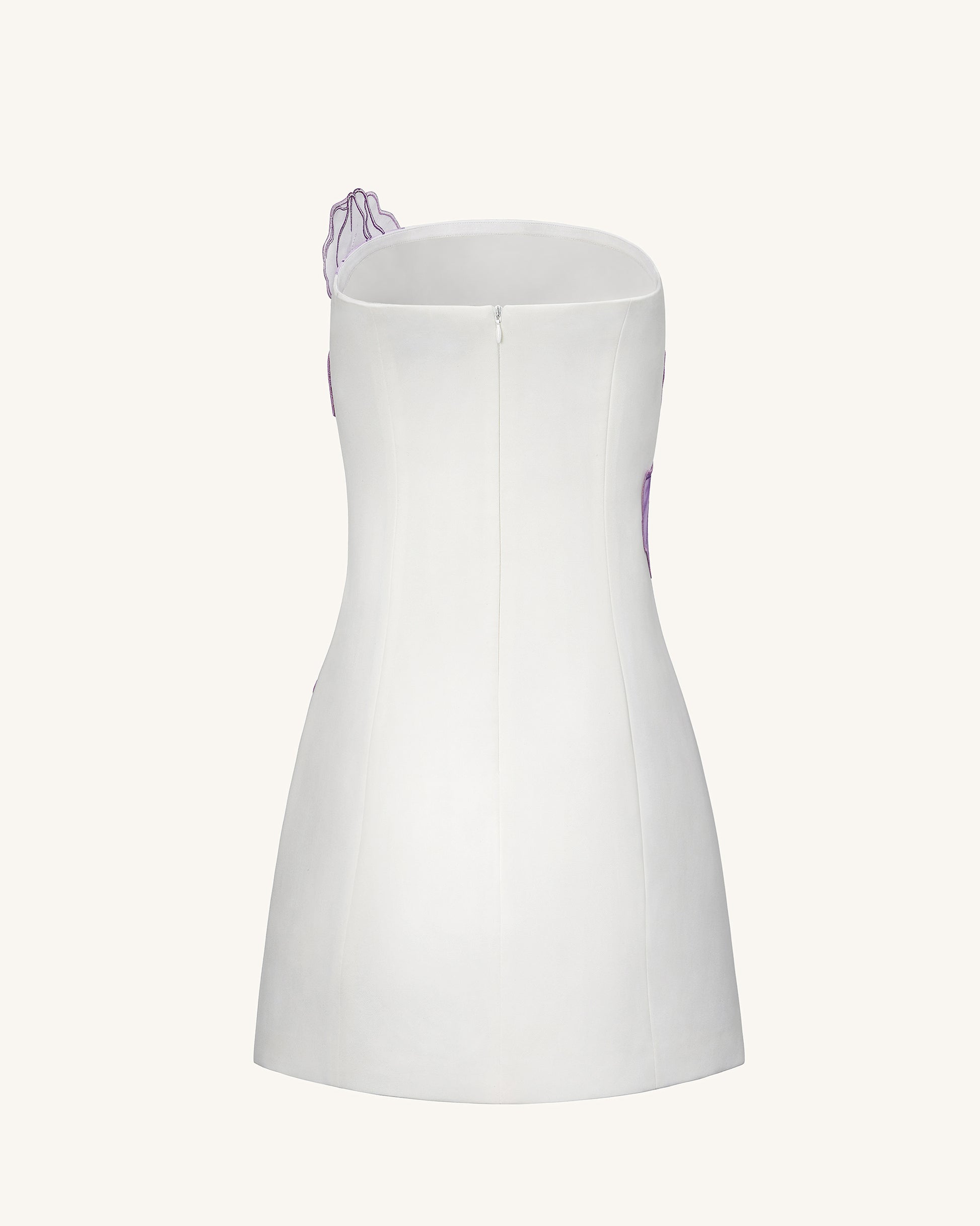 아이리스 플로럴 프린트 스트랩리스 드레스 - 화이트
