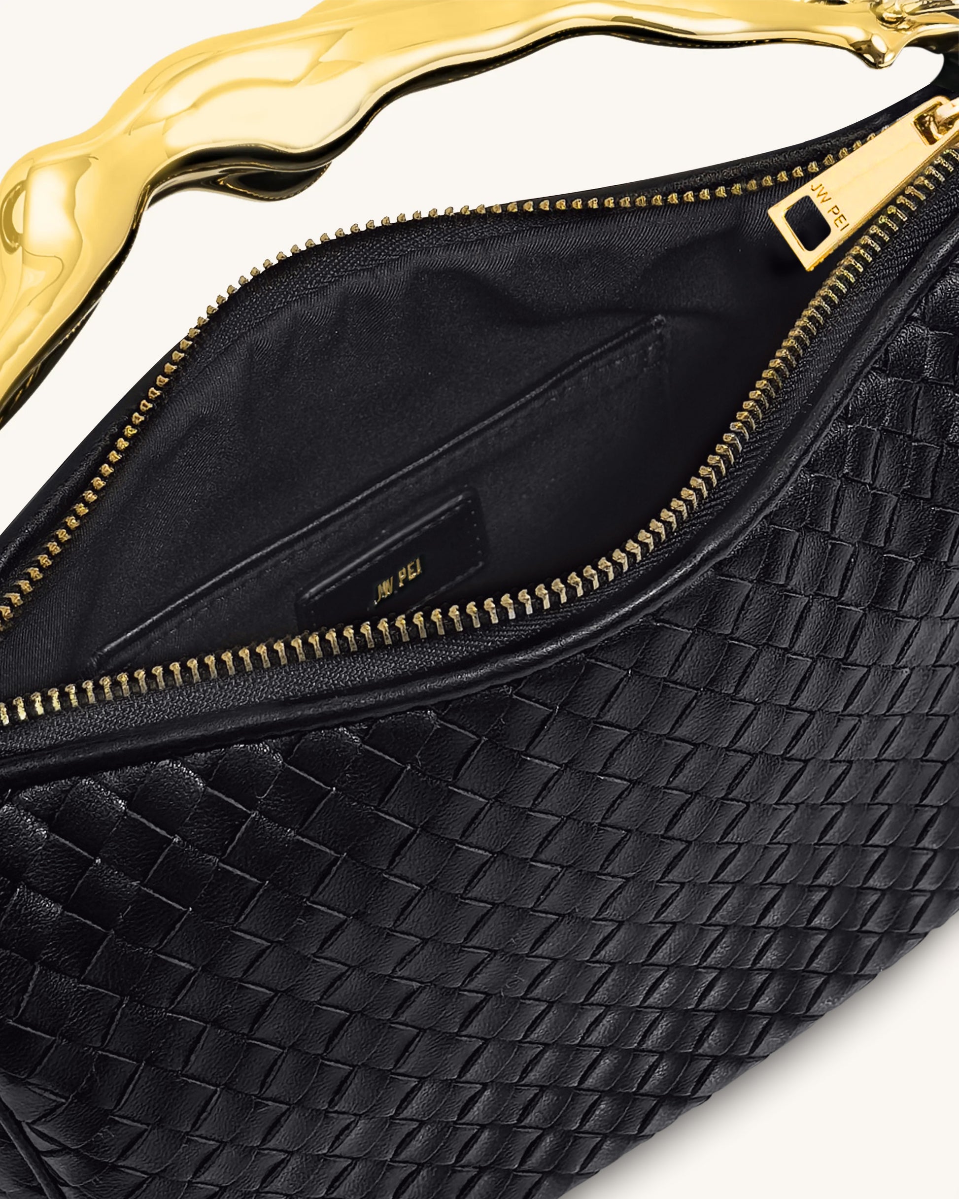 Jenny 블랙 휴먼 쉐이프 핸들 위빙 핸드백