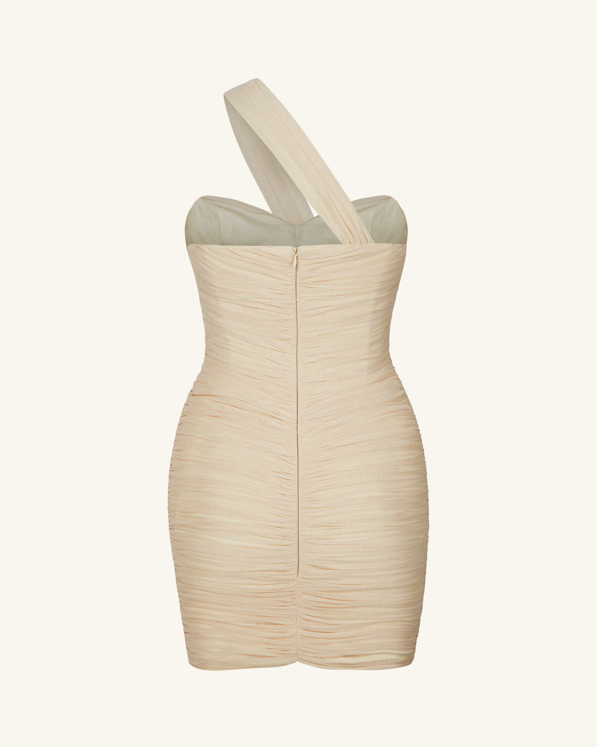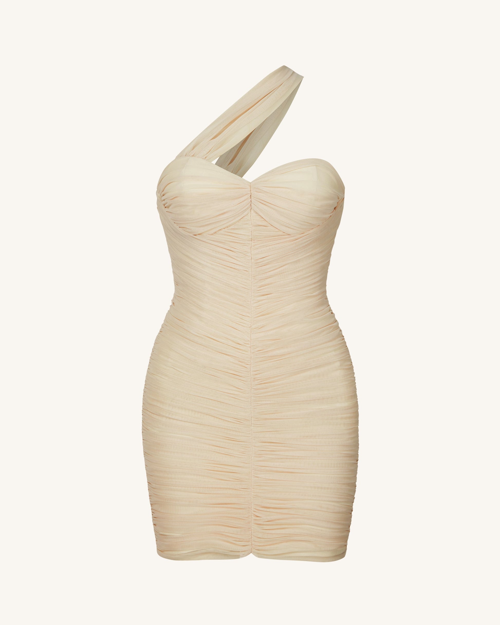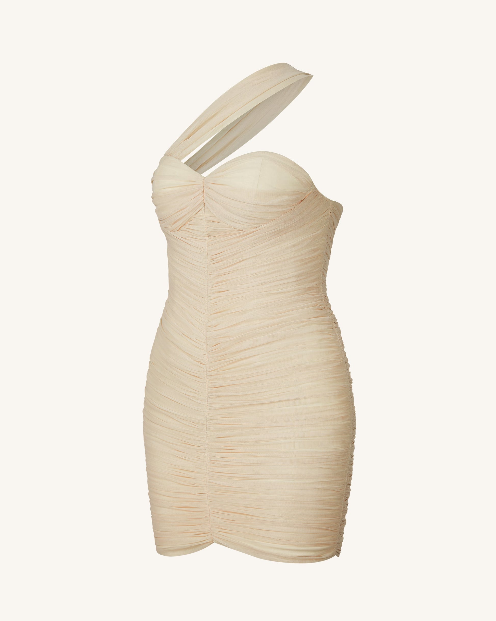 Josephine 원숄더 셔링 미니 드레스 - 누드
