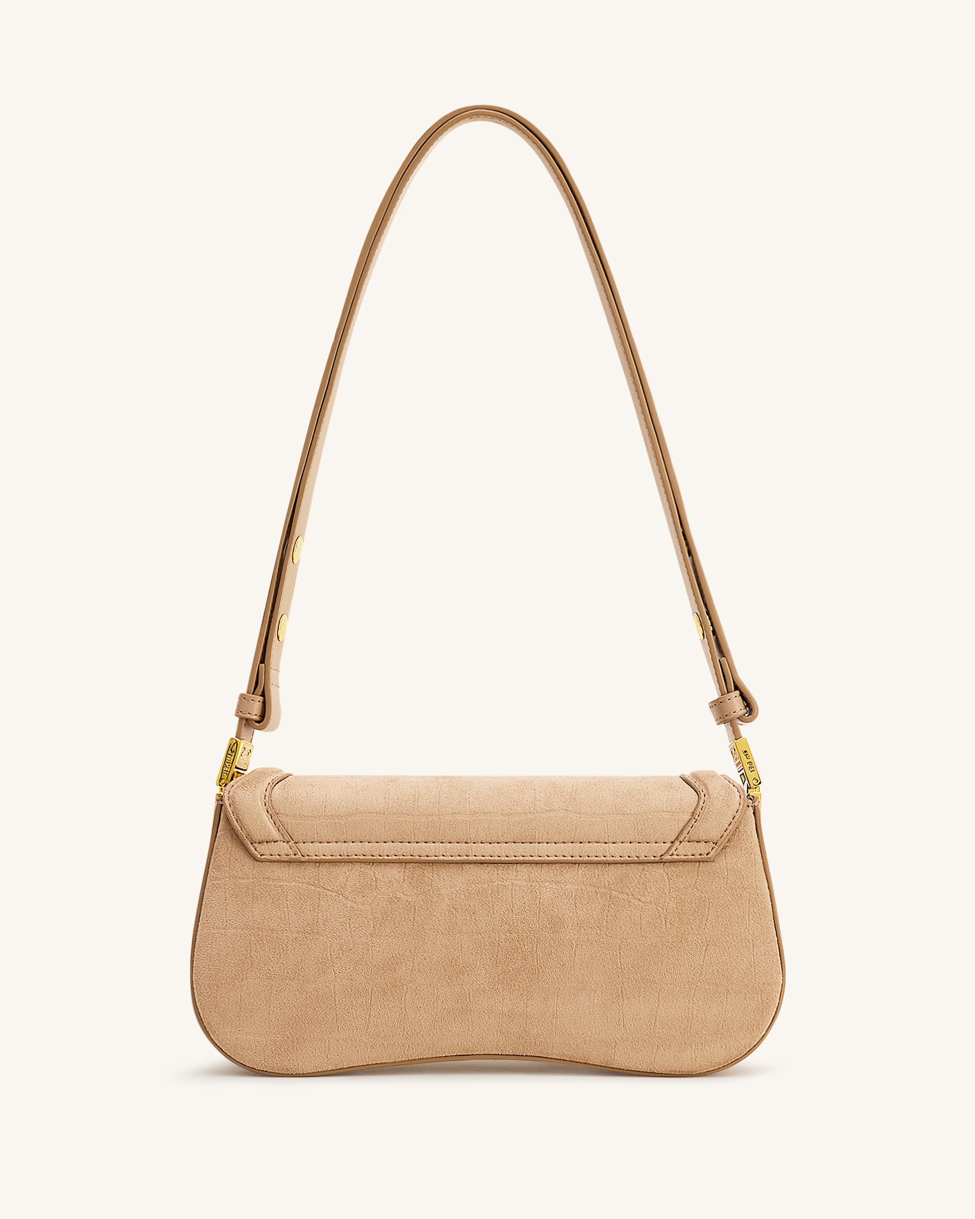 Joy 악어무늬 페이크 스웨이드 숄더백 - 베이지