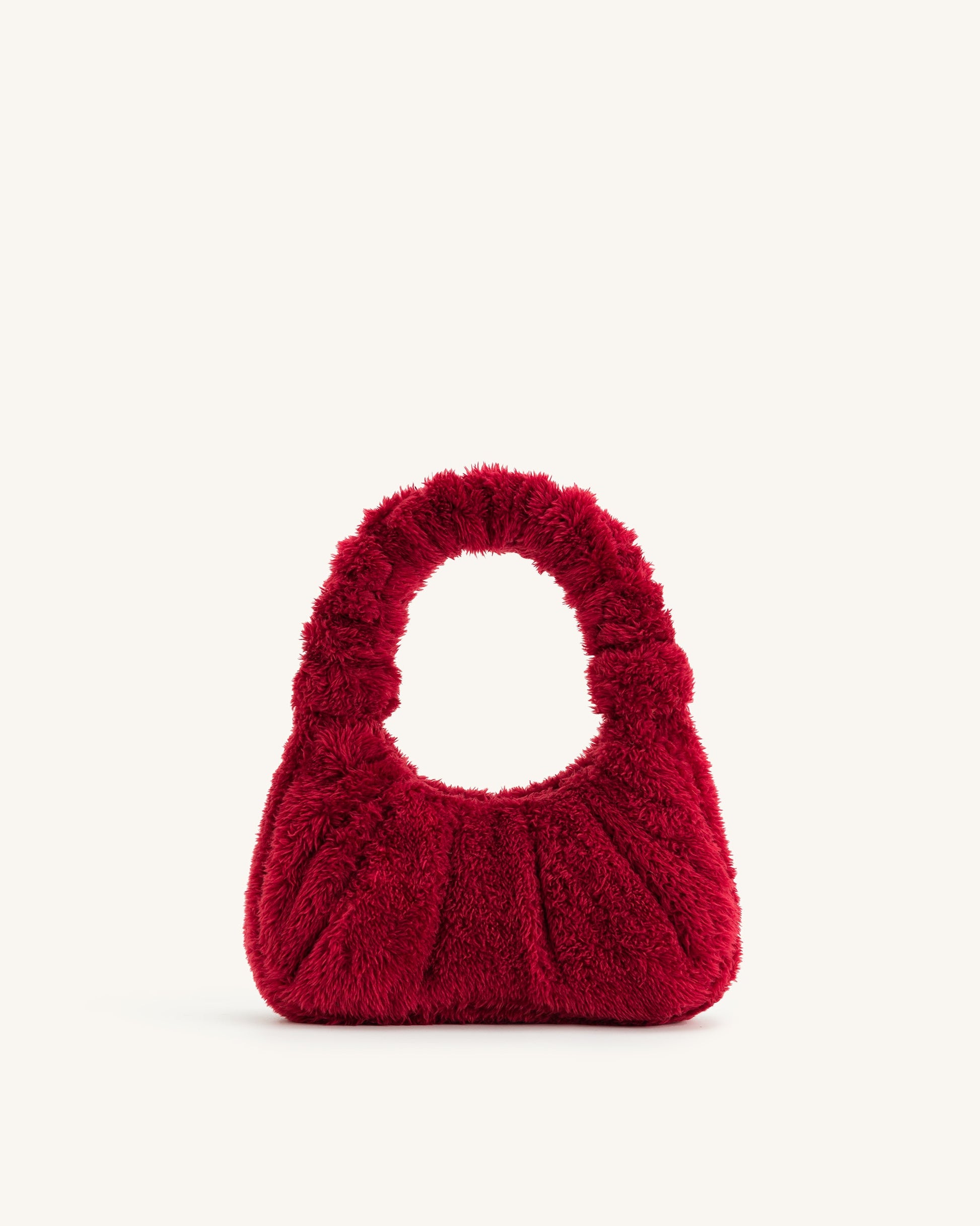 Gabbi 인조 모피 미디엄 러쉬드 호보 핸드백 - 마젠타색