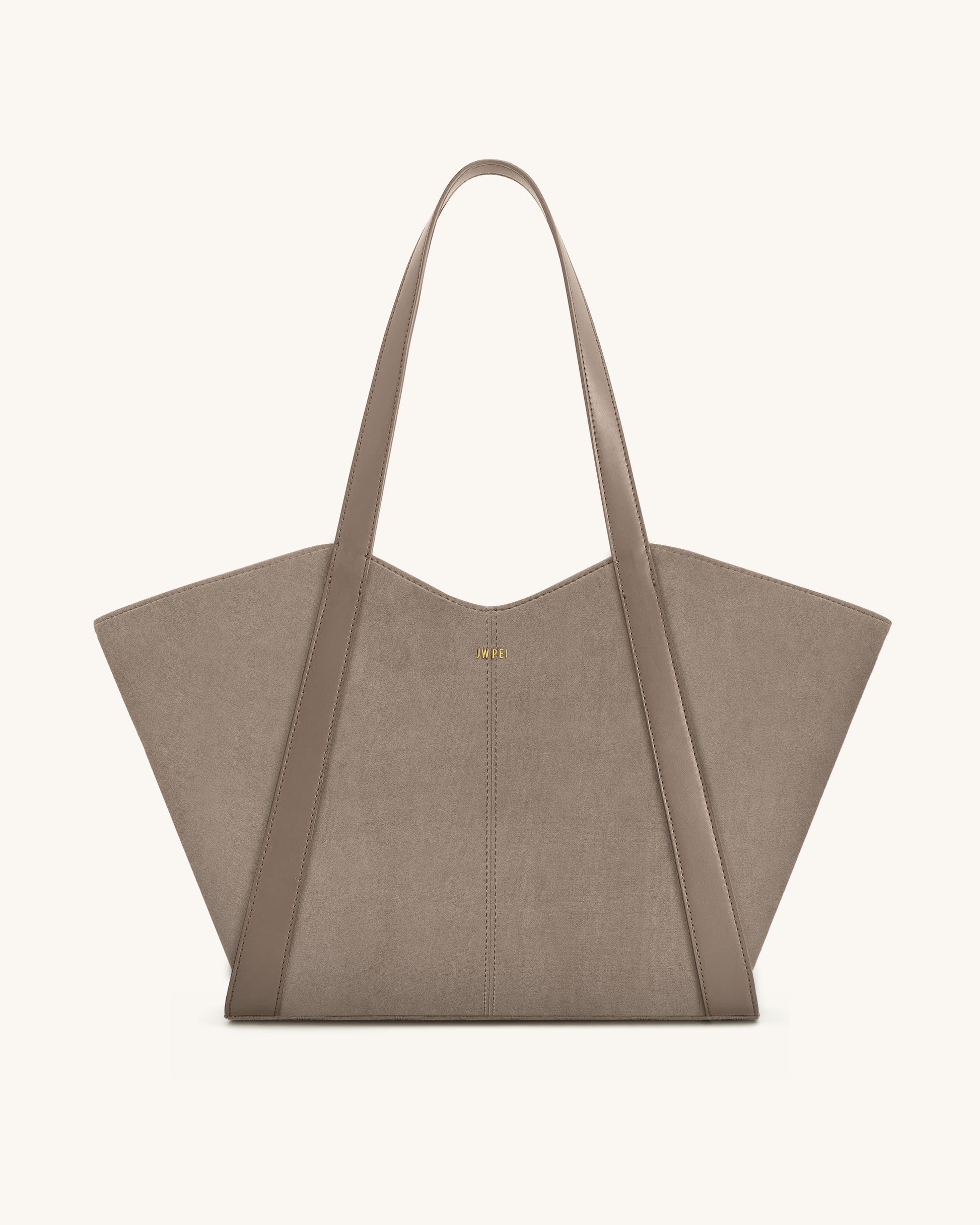 이 오버사이즈 토트백은 세련된 토프 그레이 컬러에 깔끔한 트래피즈 실루엣과 부드러운 매트 마감 처리가 돋보입니다. 넓은 숄더 스트랩과 넉넉한 내부 공간을 갖추어 평일 업무 복장과 주말 스타일 모두에 자연스럽게 어울립니다.
