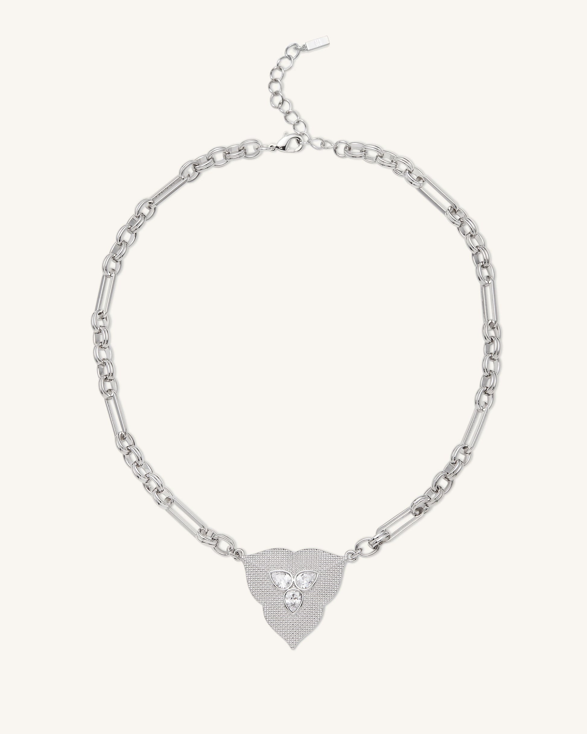 리프 펜던트 네크리스 - 18ct 화이트 골드 도금 & 화이트 지르콘