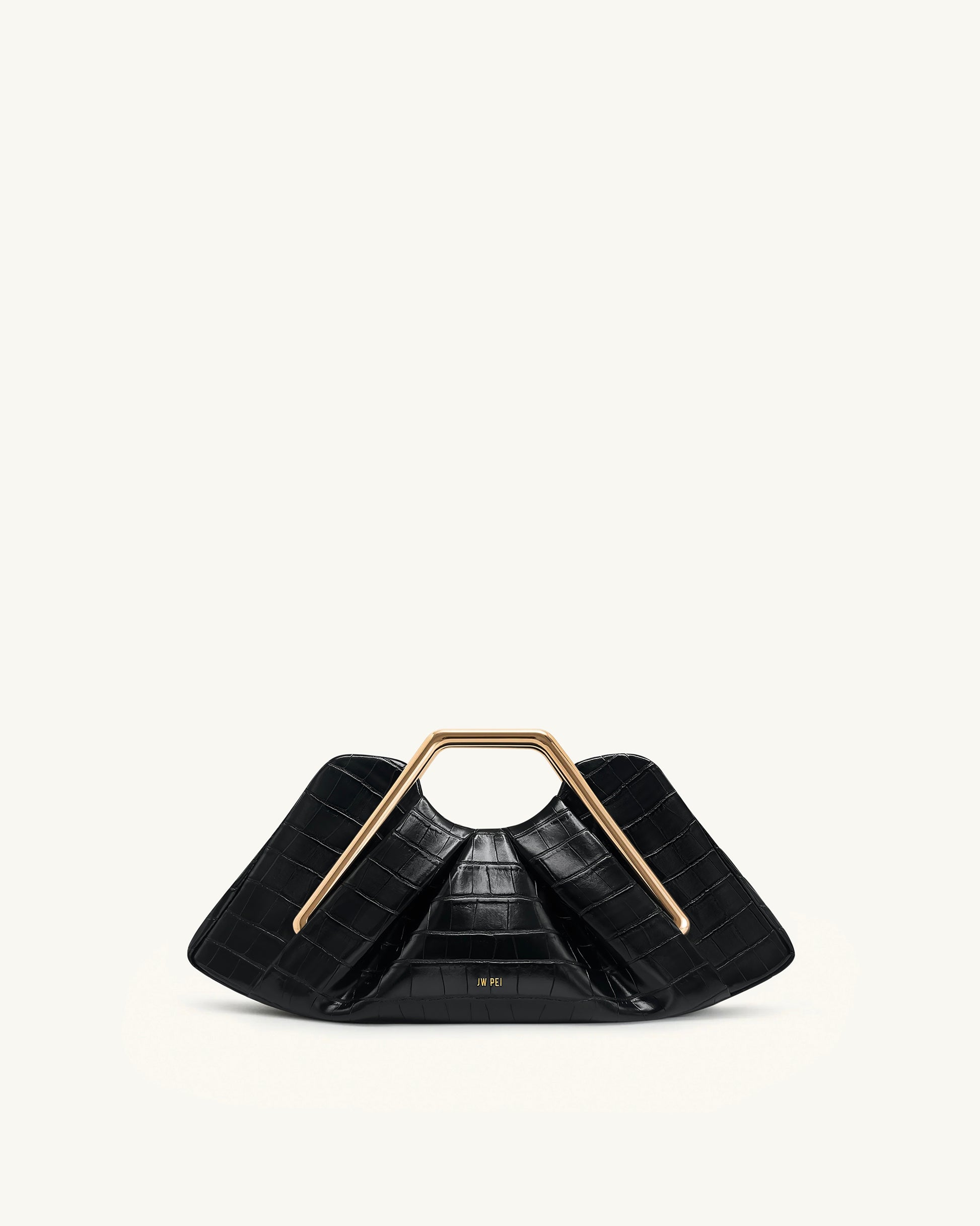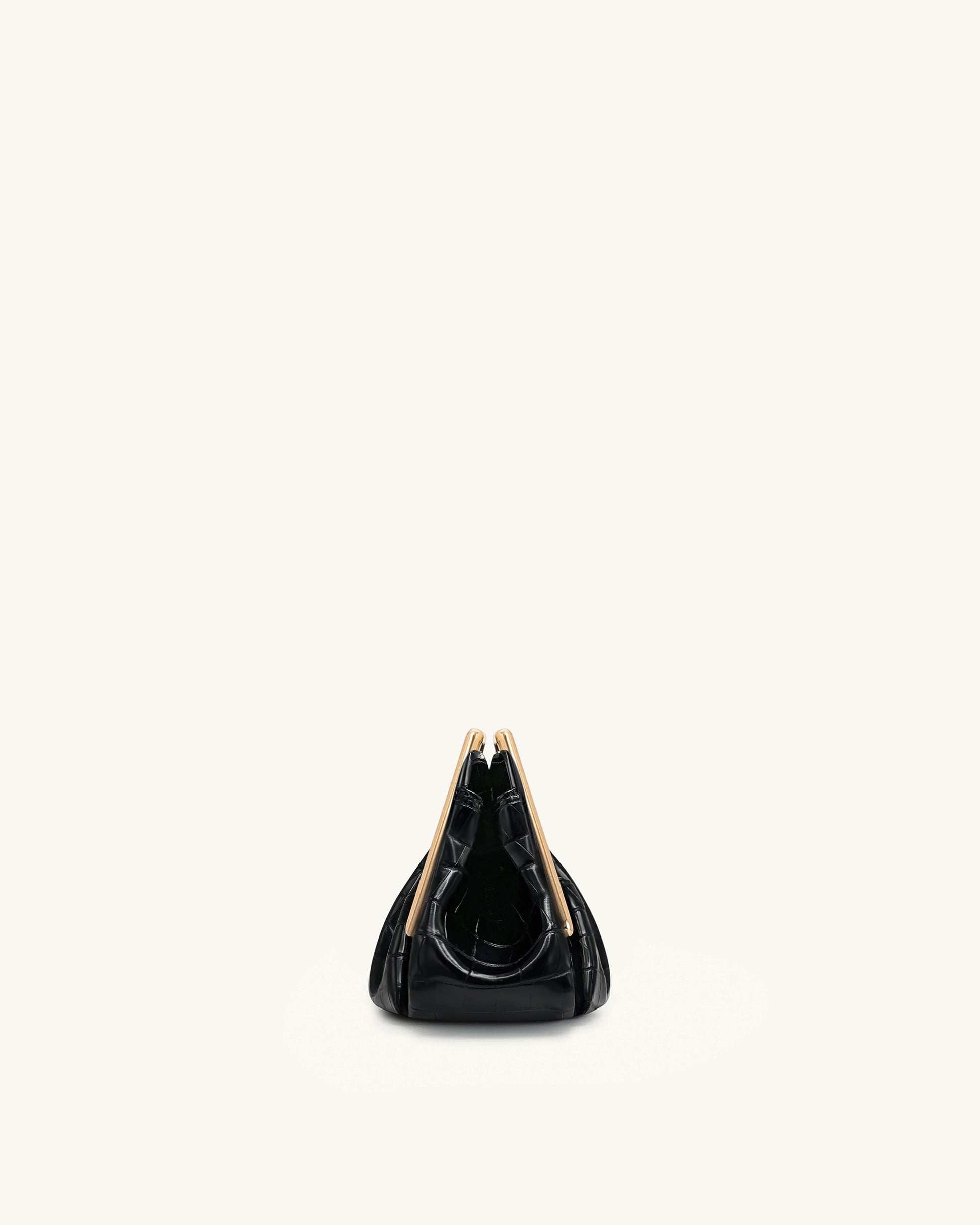 Lila 페이크 악어 효과 메탈 프레임 클러치 - 블랙