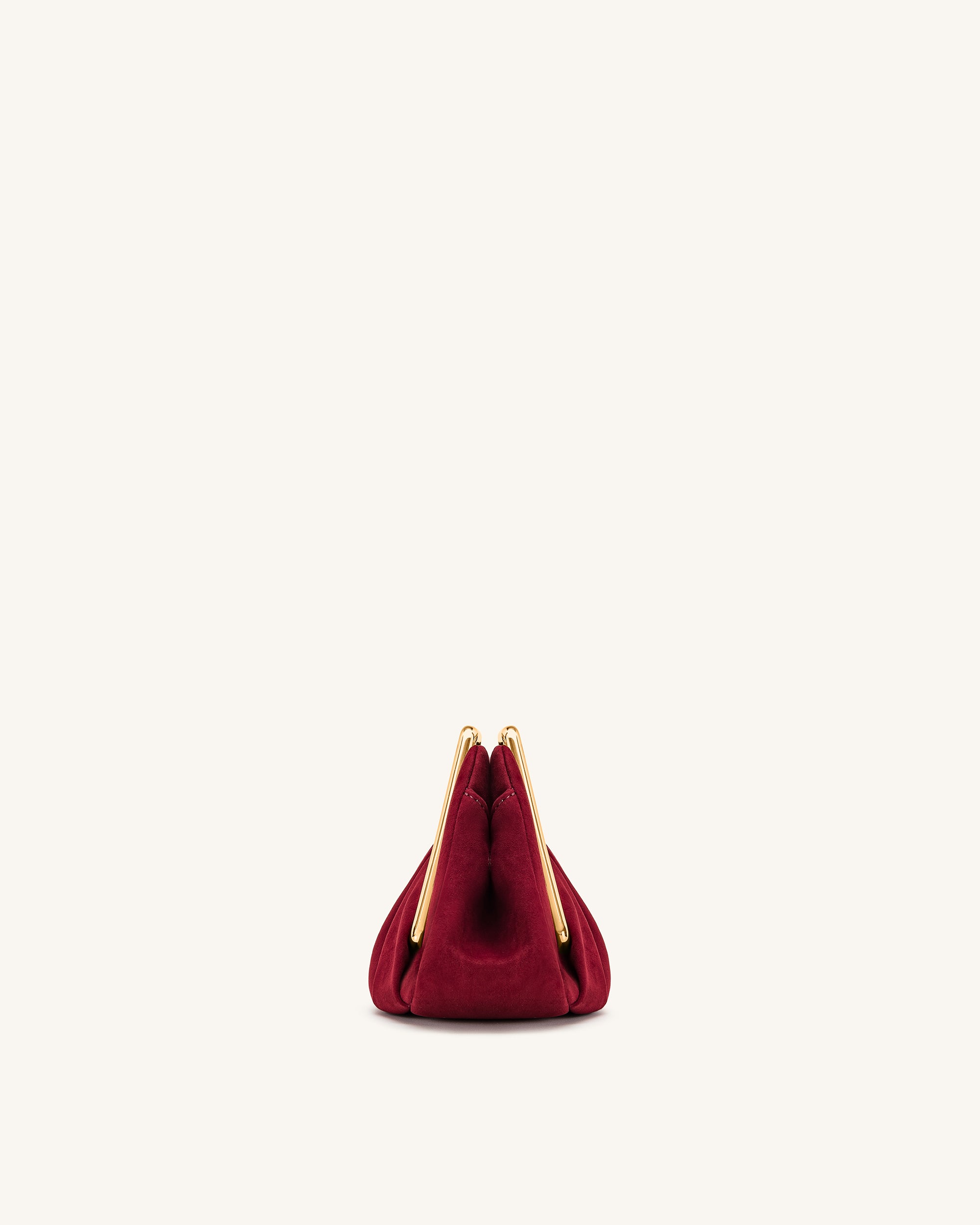 Lila 페이크 스웨이드 메탈 프레임 클러치 - 레드