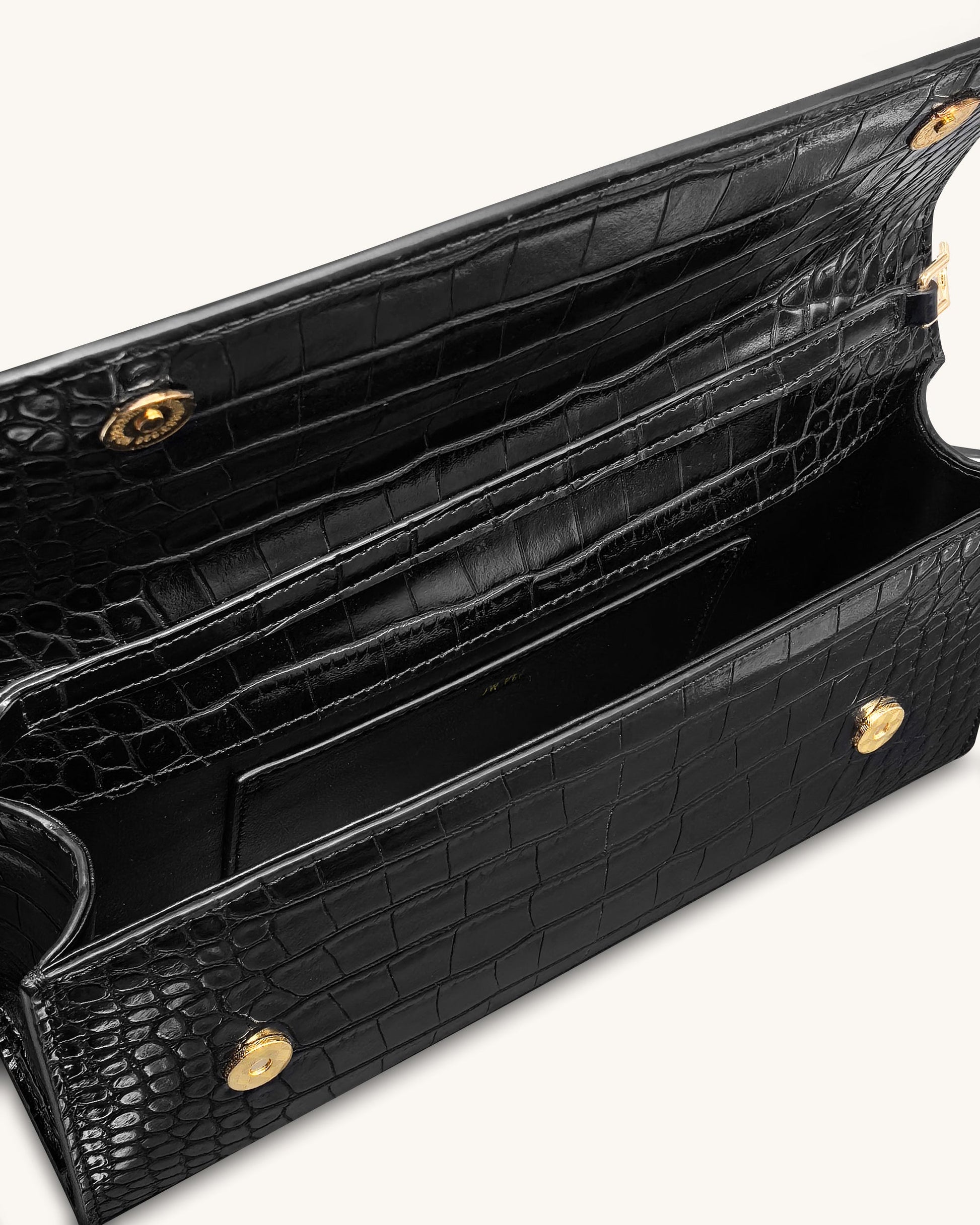 Maya 레오파드 모양 하드웨어 핸들 탑 핸들 백 - 블랙 크록