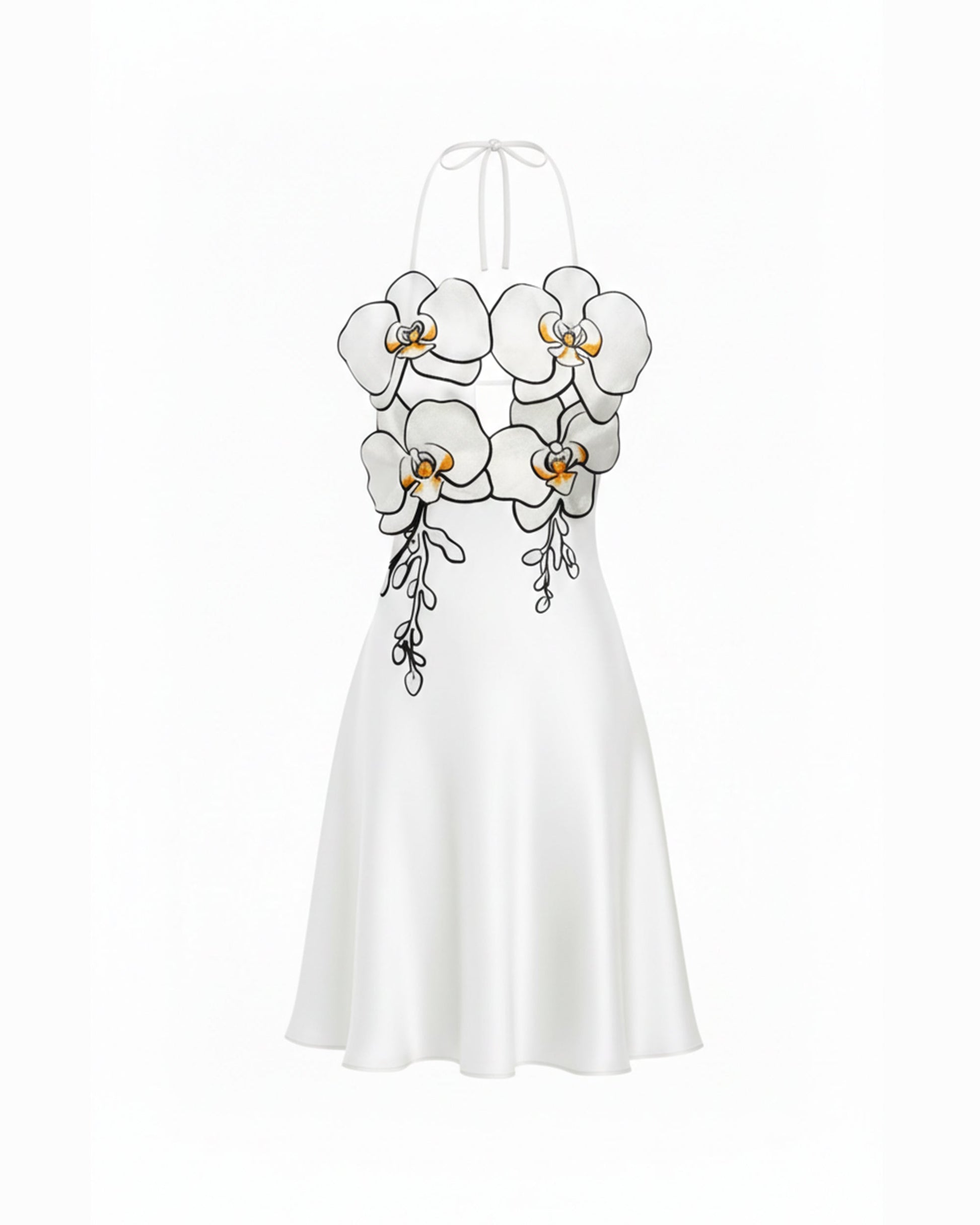 오키드 자수 홀터넥 미니 드레스 - 화이트