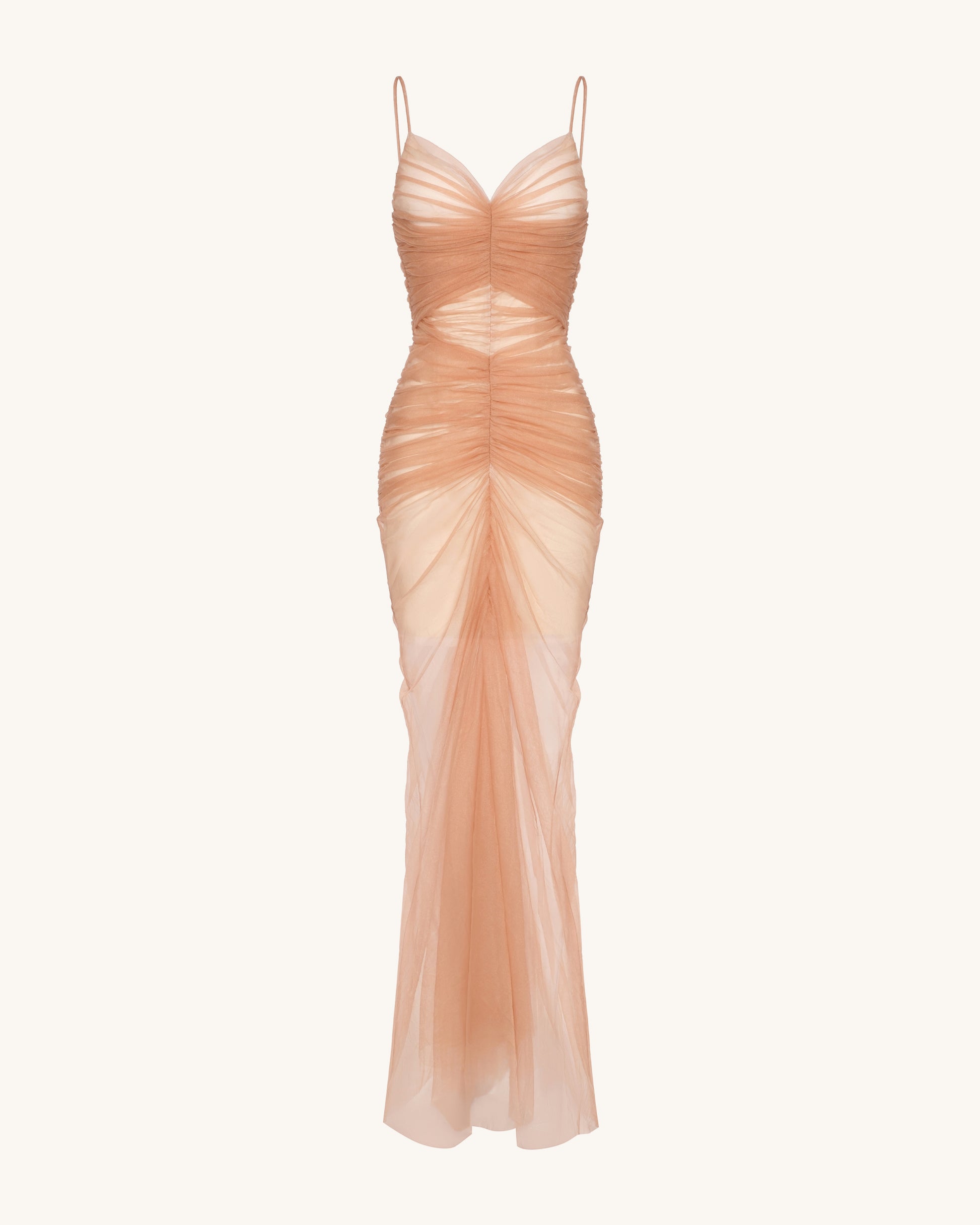 Piper 드레이프 망사 이브닝 가운 - 시나몬