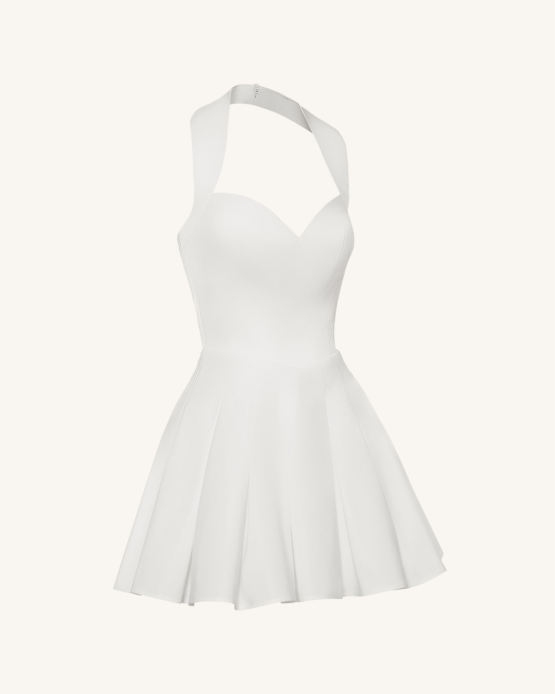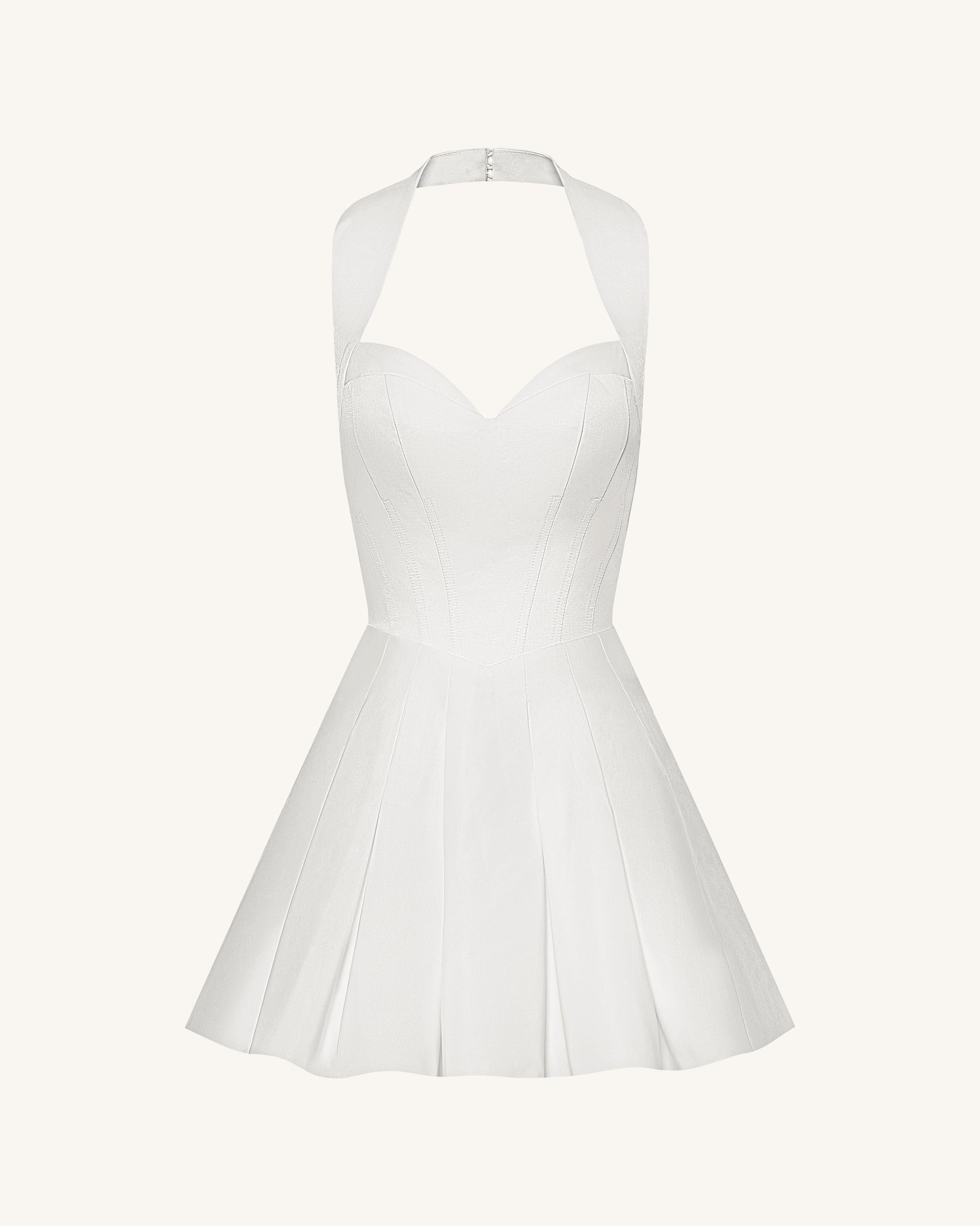 플리츠 뷔스티에 홀터 미니 드레스 - 화이트