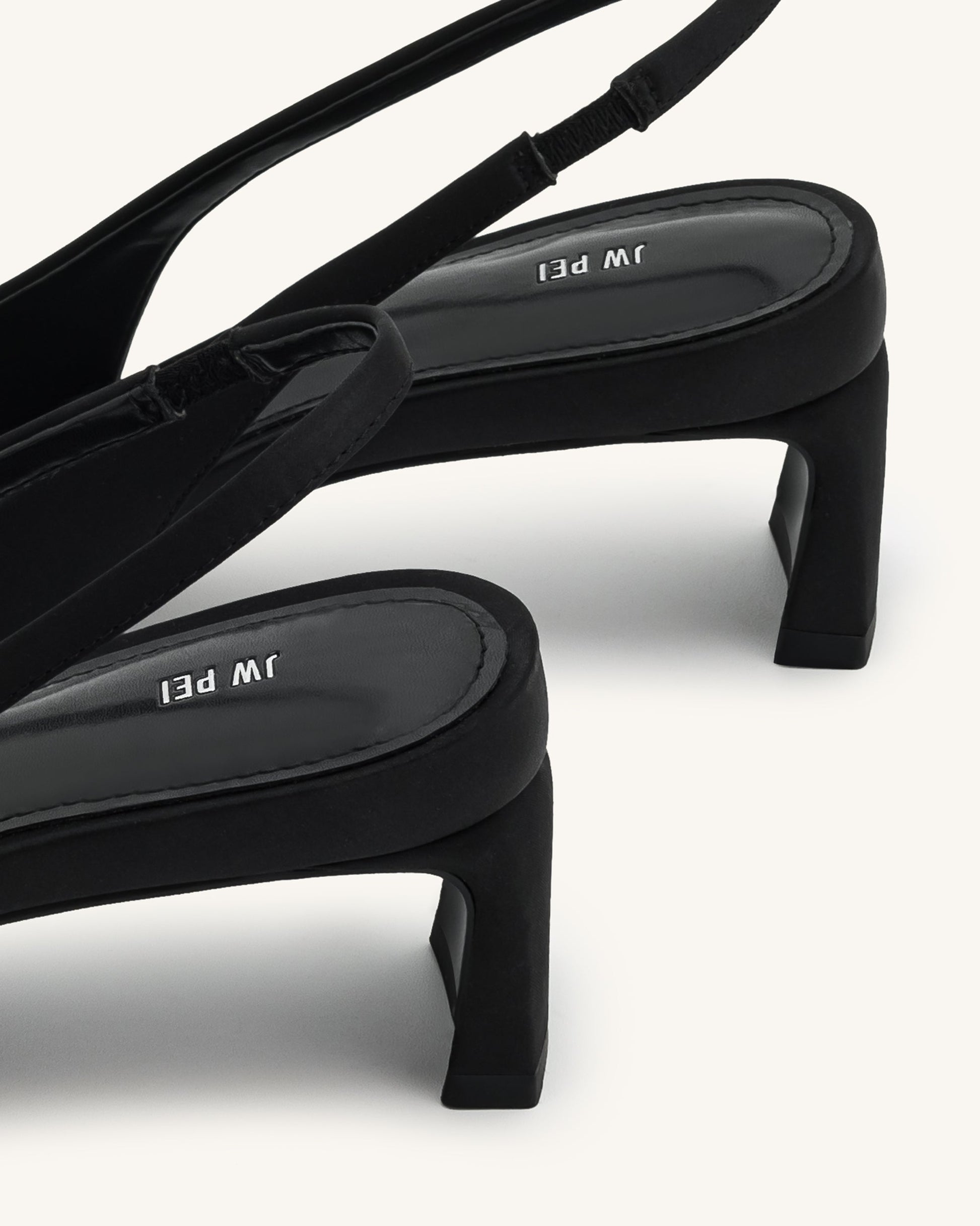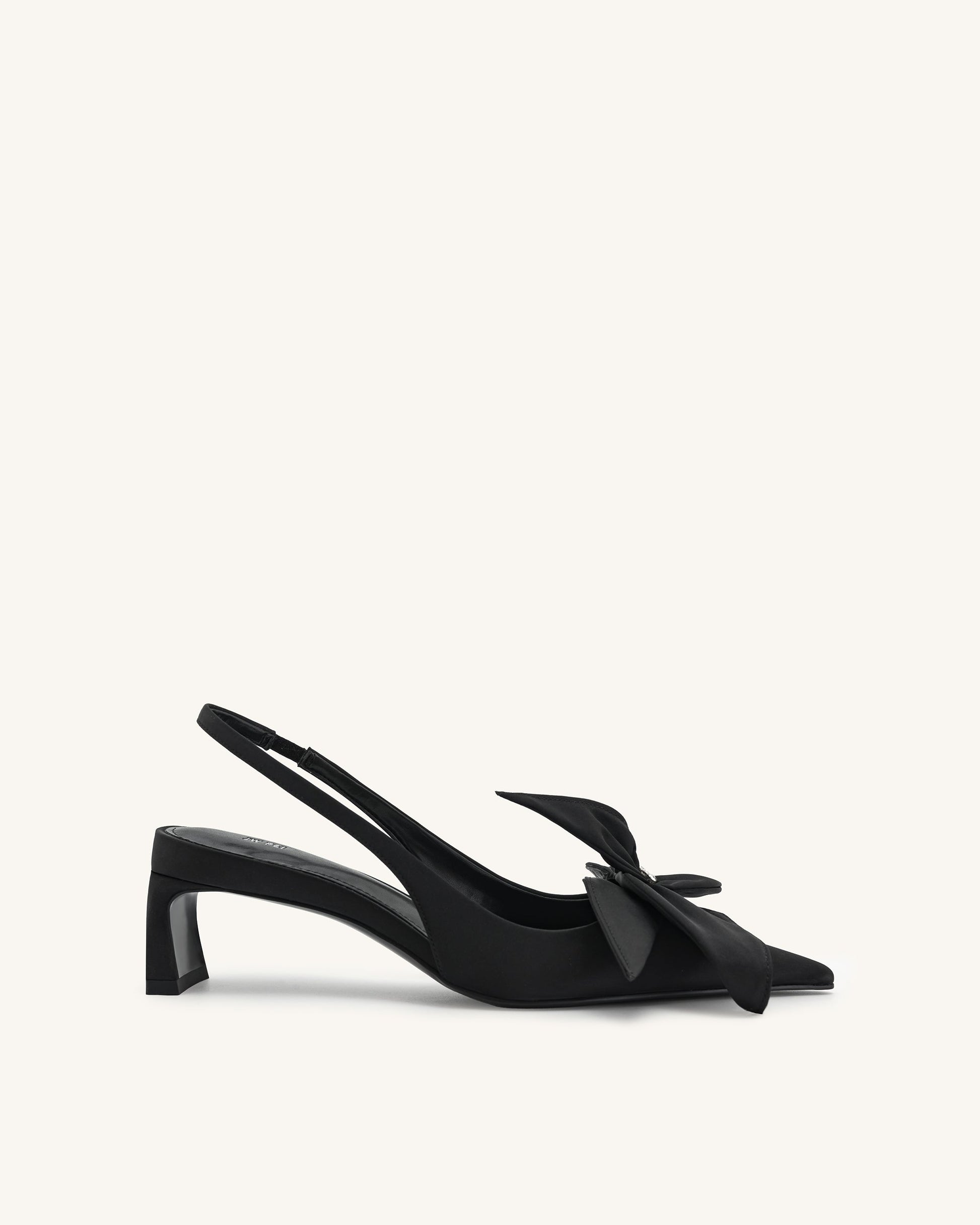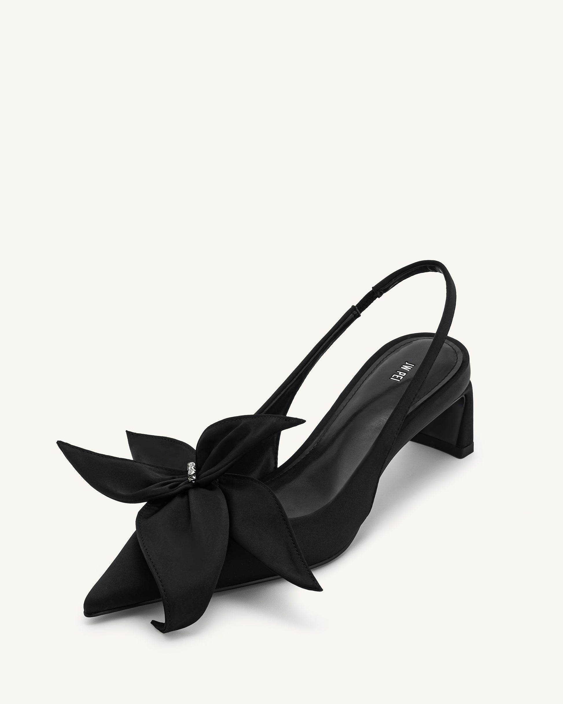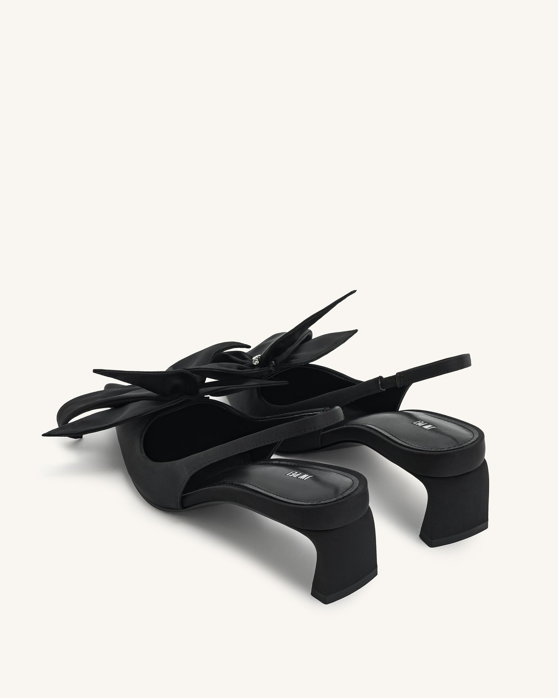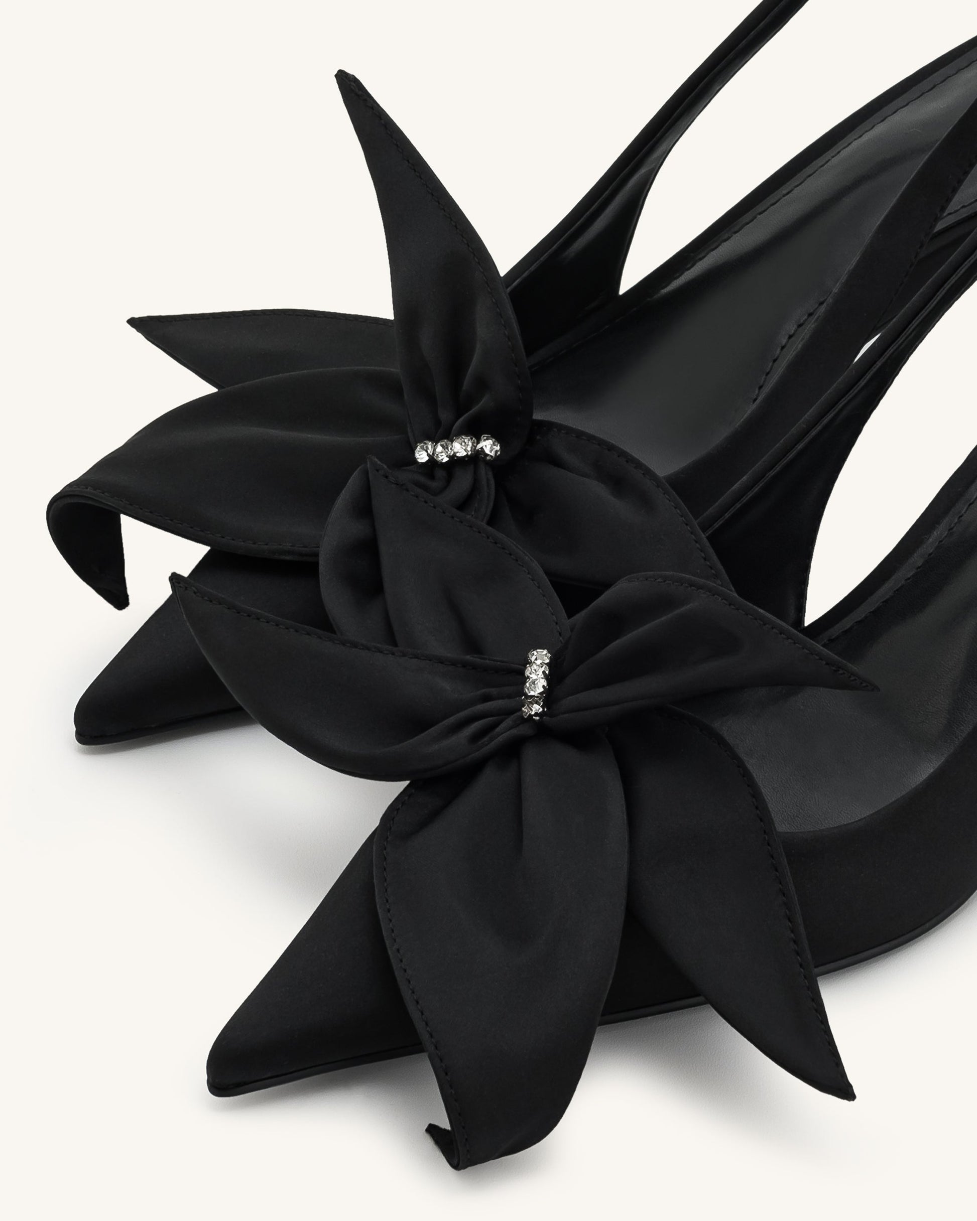 Queena 플로랄 애플리케 슬링백 펌프 - 블랙