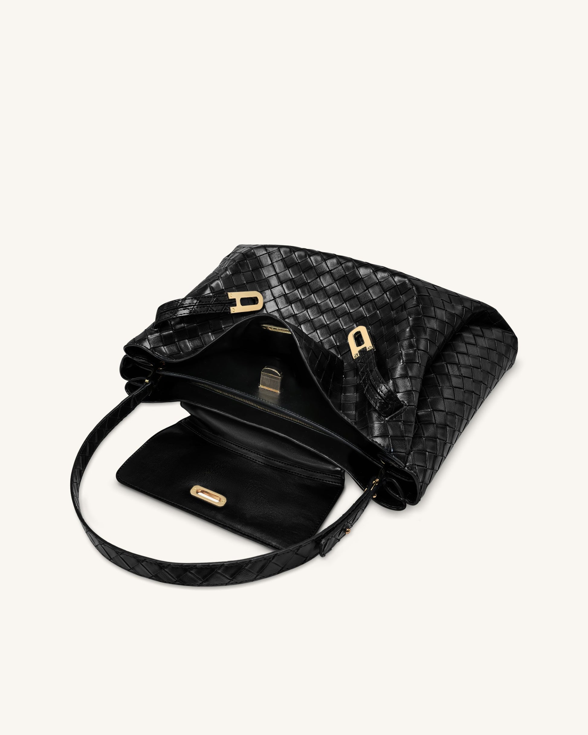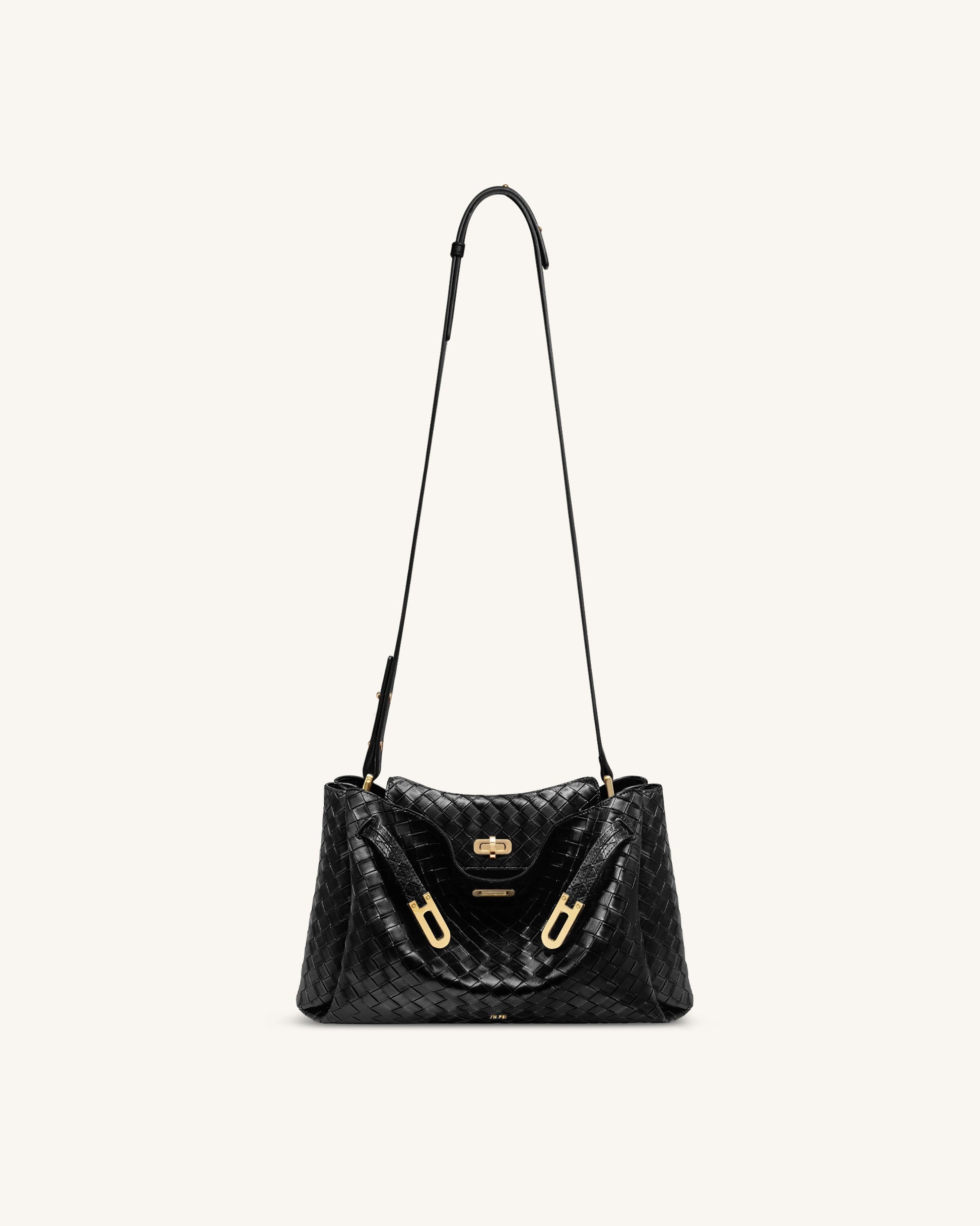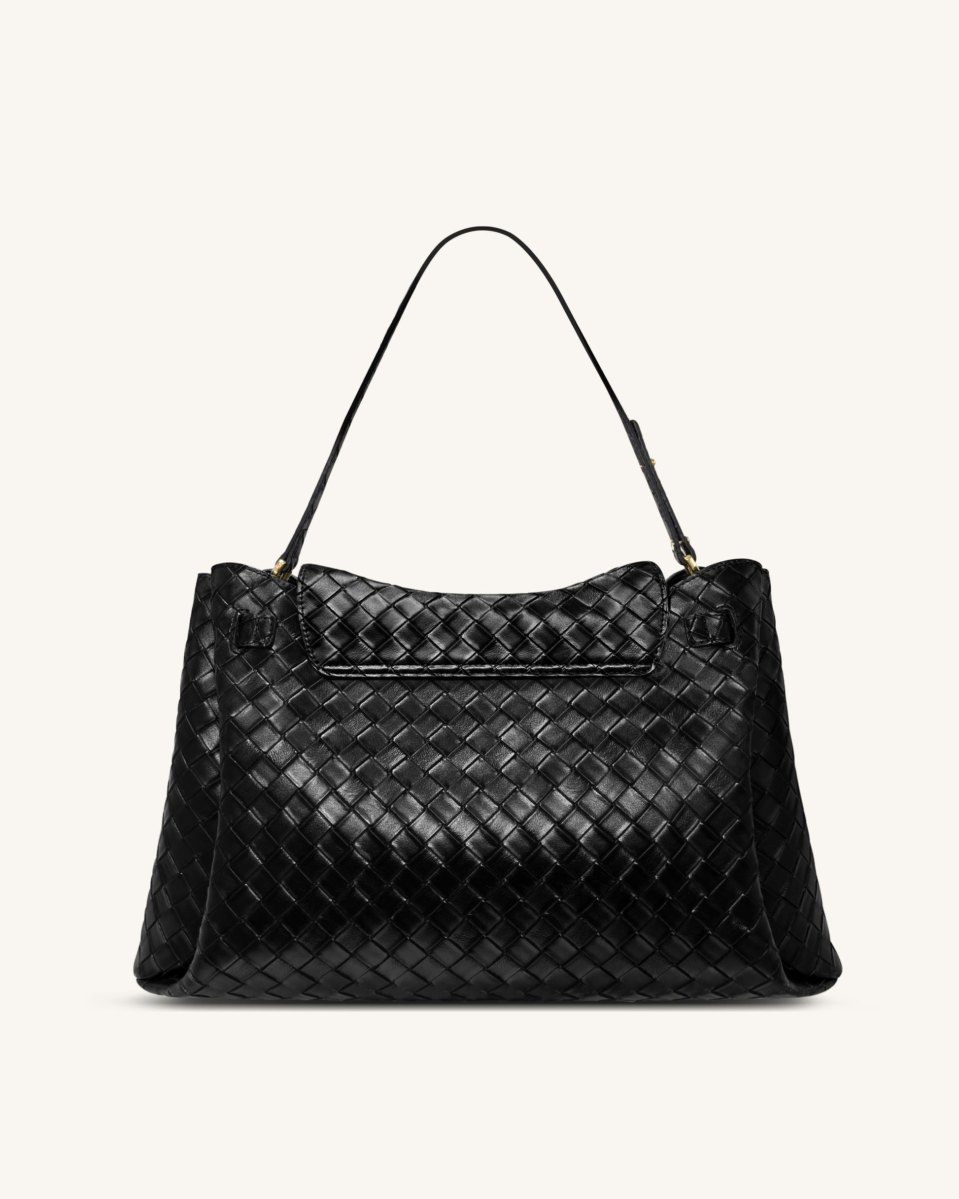 Rhea 라지 직조 질감 숄더백 - 블랙