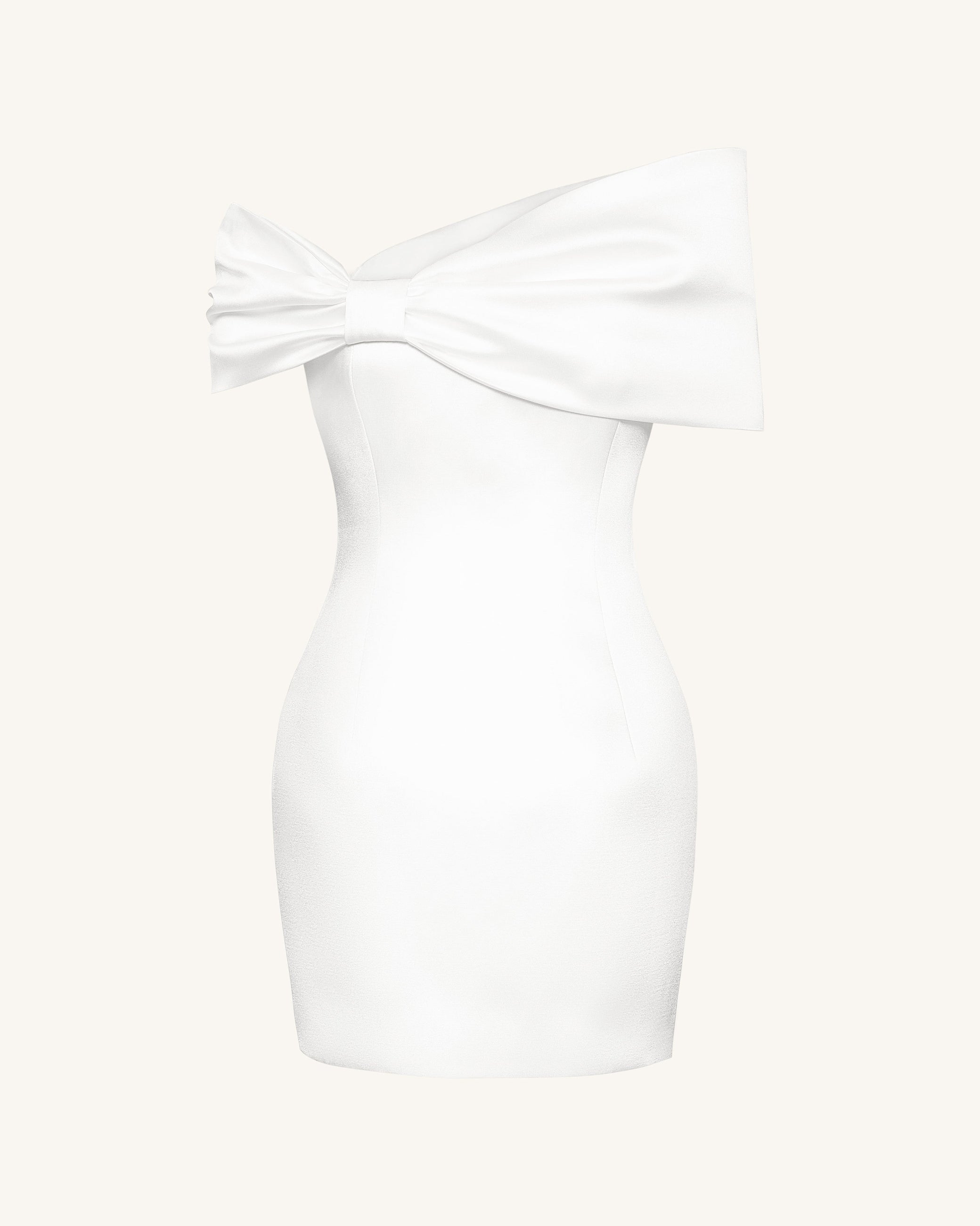새틴 비대칭 보우 미니 드레스 - 화이트