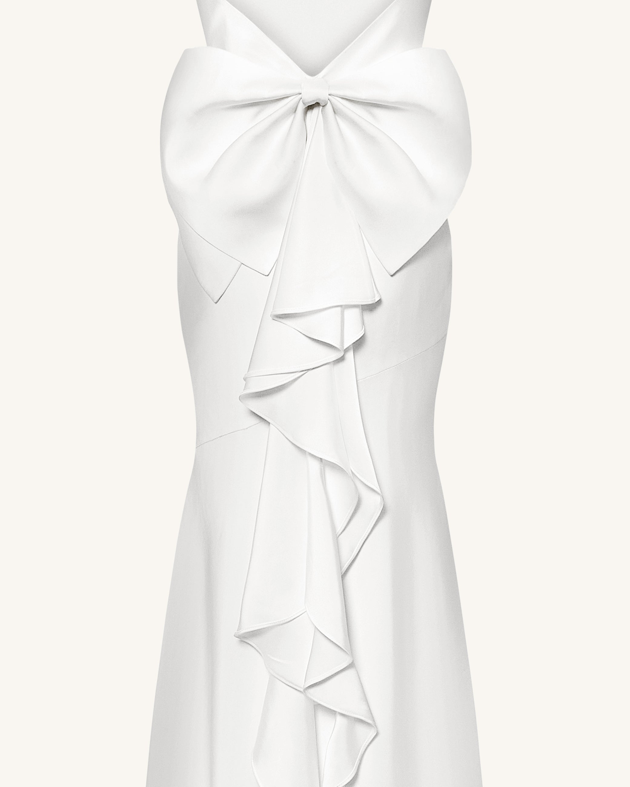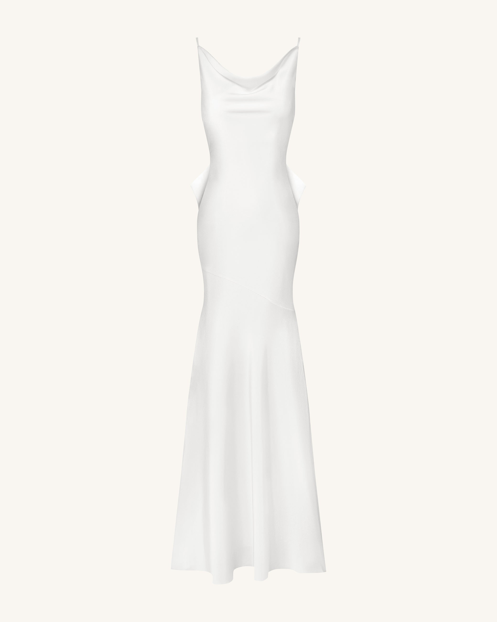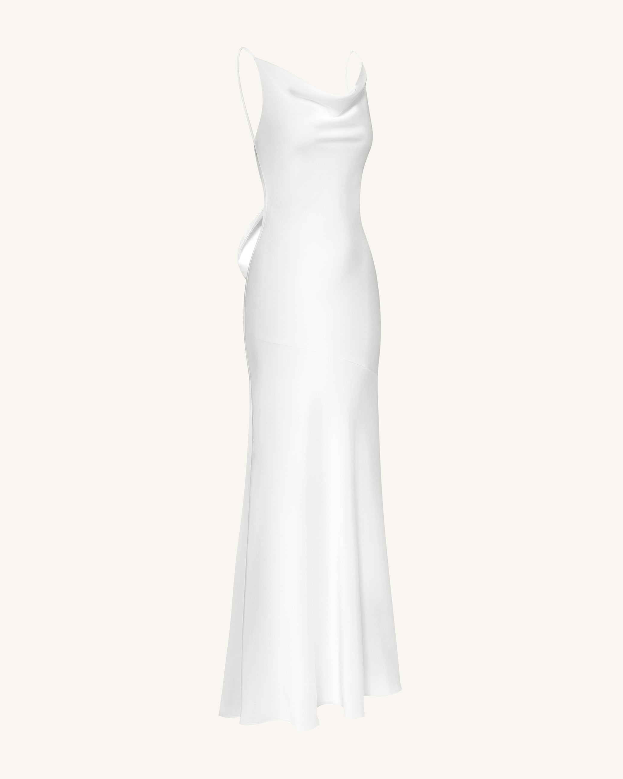 Satin 카울넥 백 보우 맥시 드레스 - 화이트
