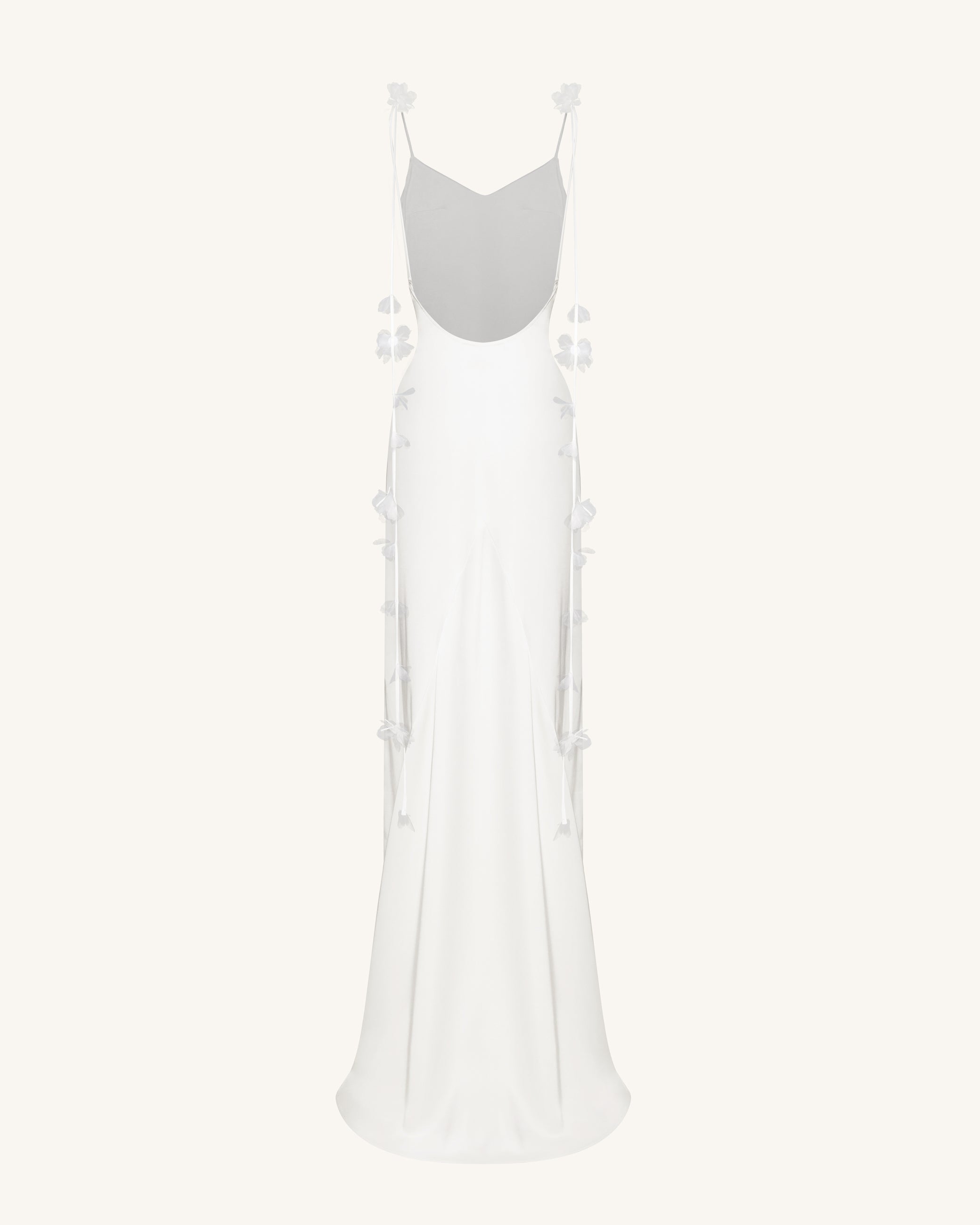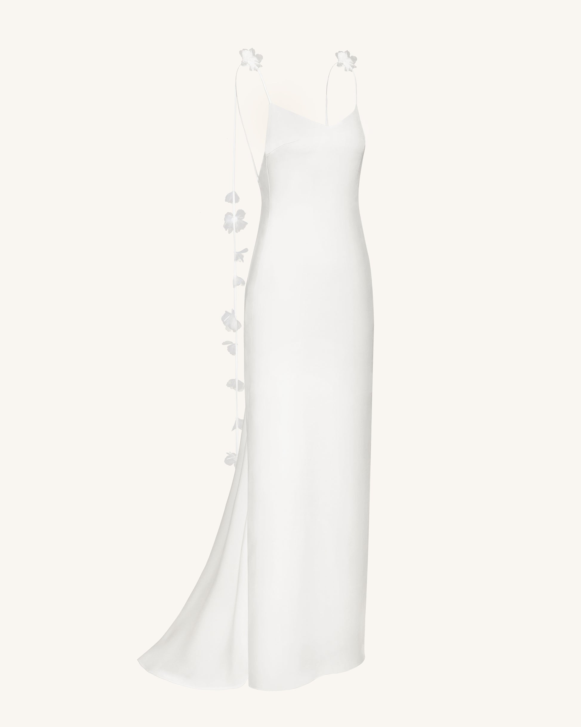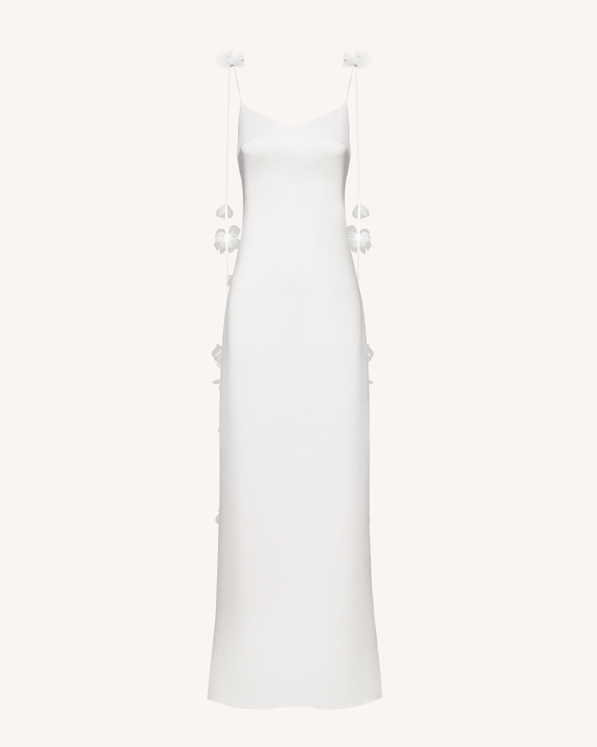Satin 꽃 장식 스트랩 맥시 드레스 - 화이트