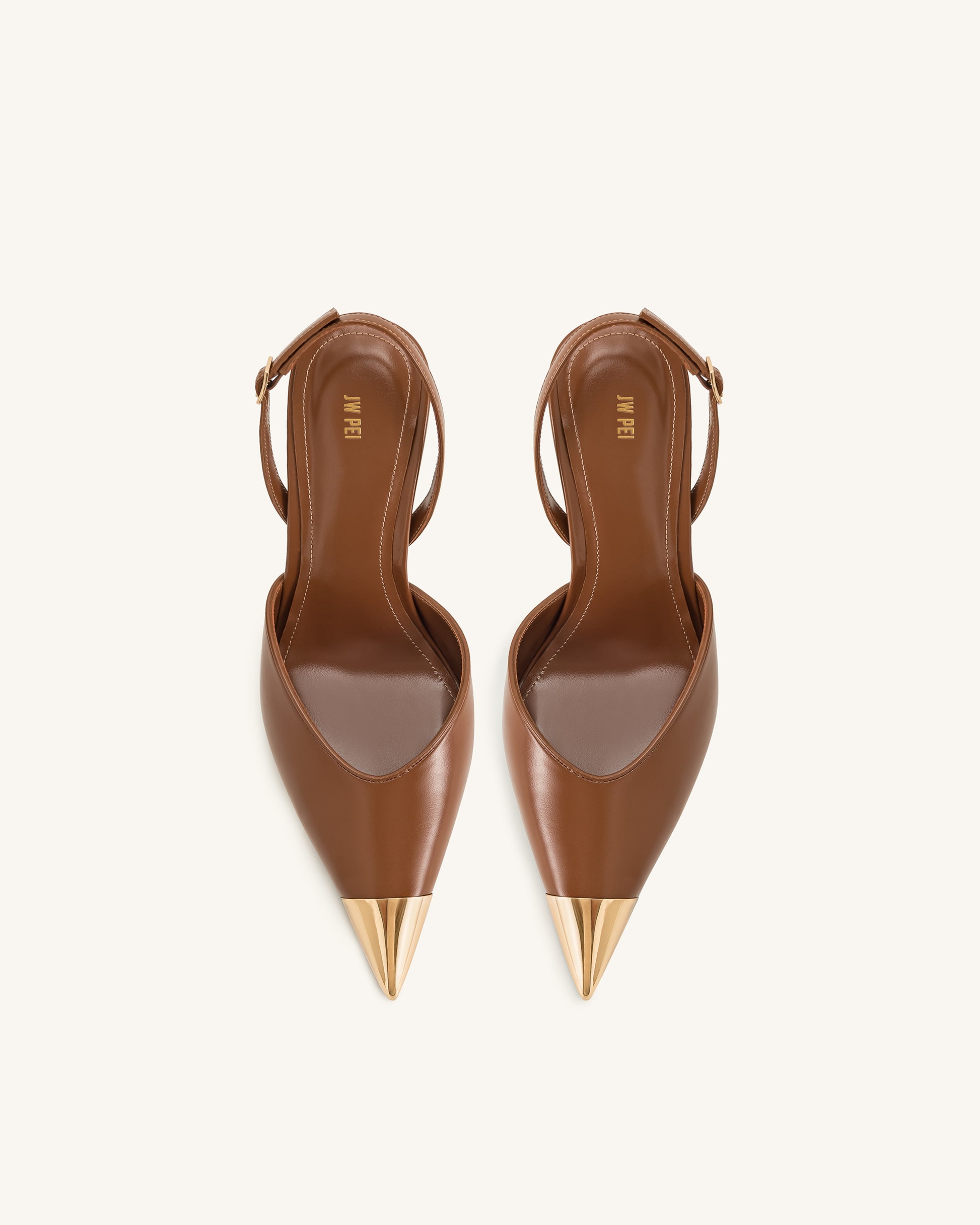 Savannah 골드 팁 슬링백 펌프스 - 브라운