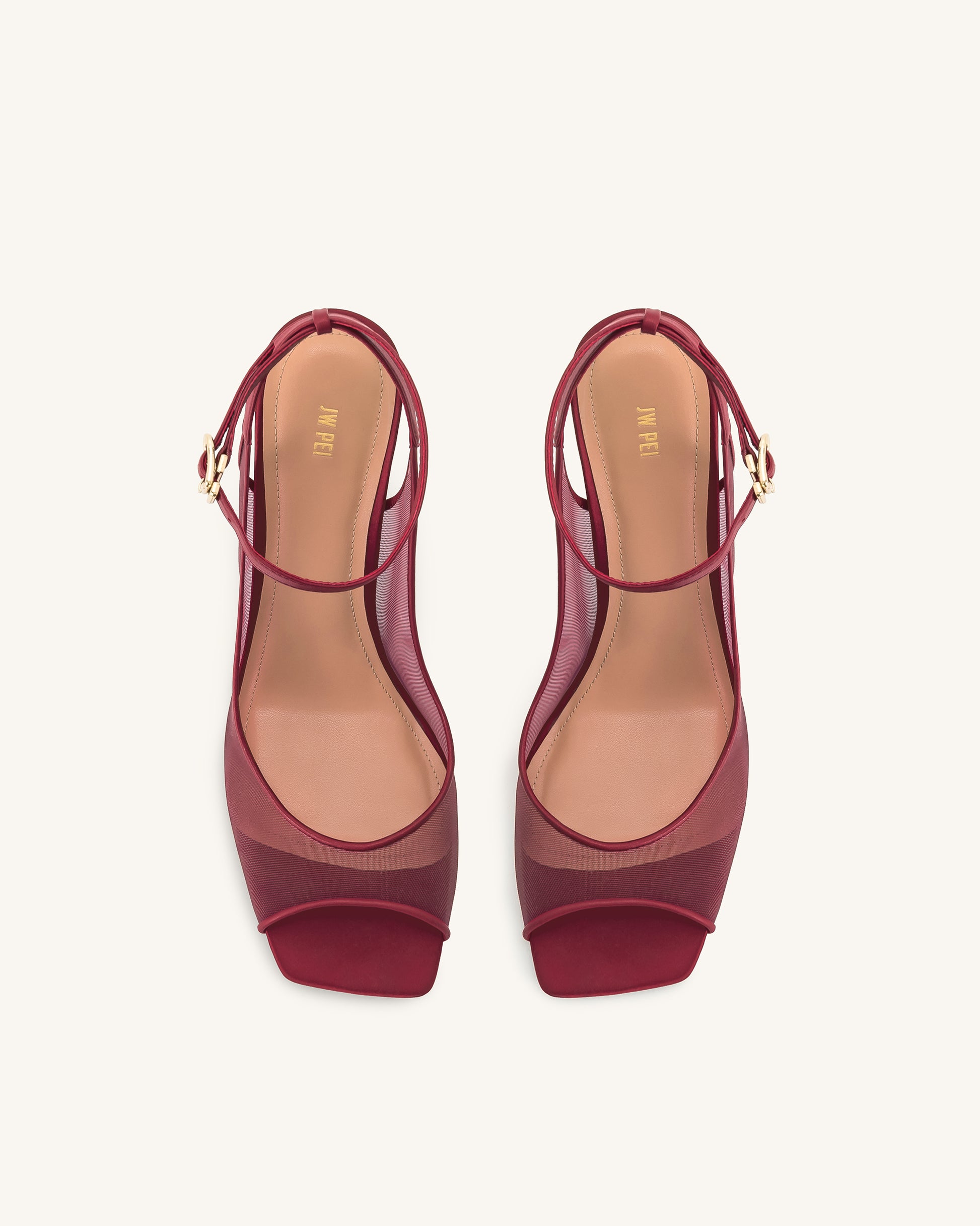 Serenity 오픈토 메시 슬링백 샌들 - 버건디