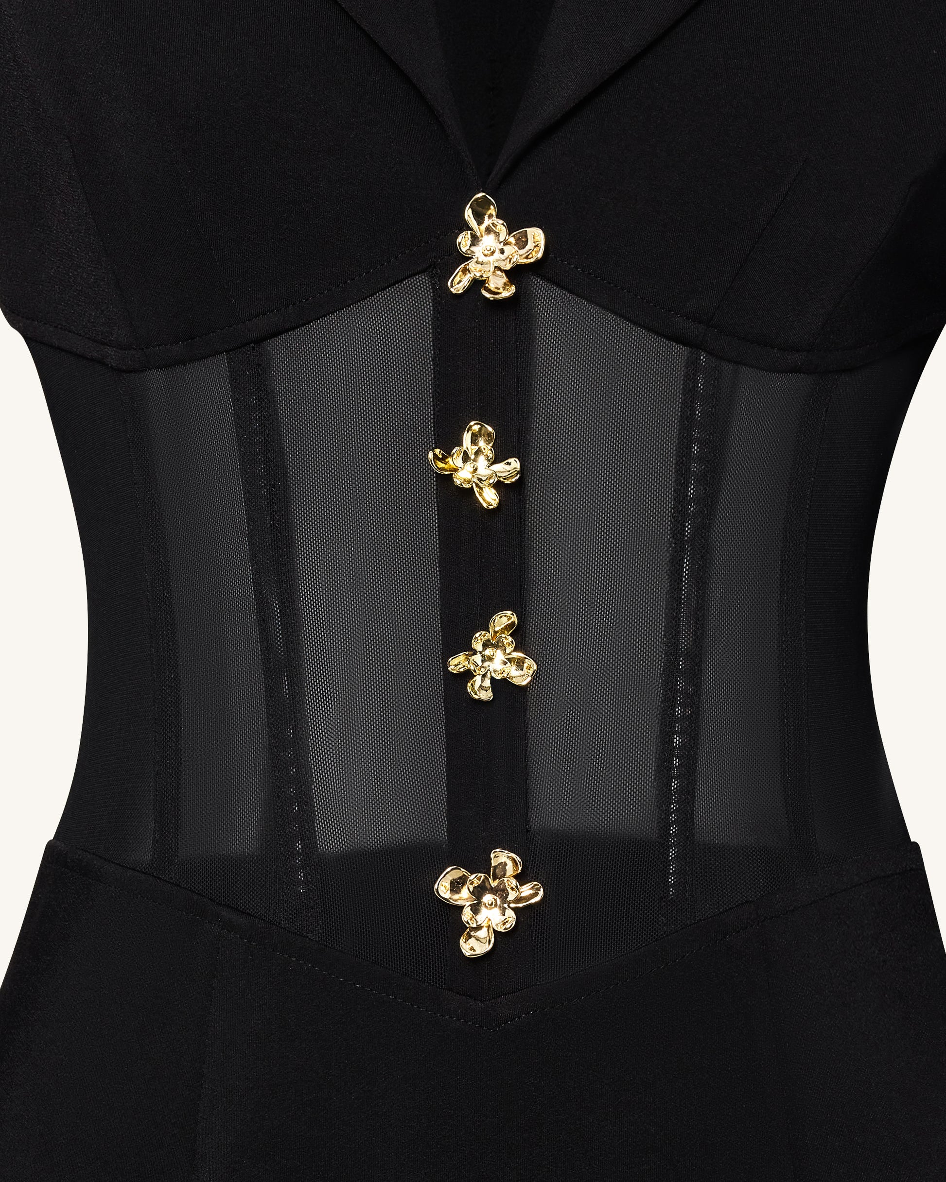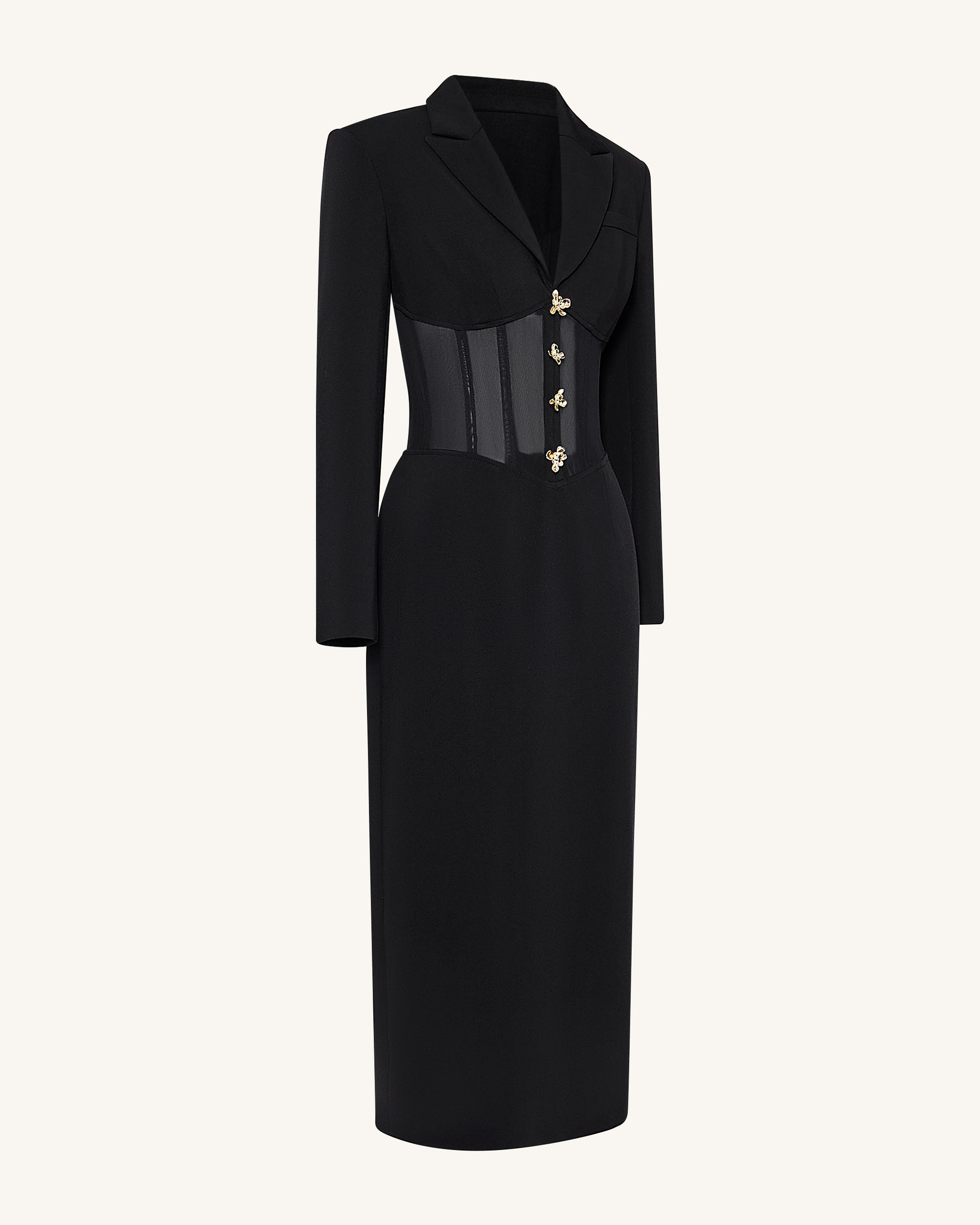 시스루 보닝 코르셋 웨이스트 블레이저 맥시 드레스 - 블랙