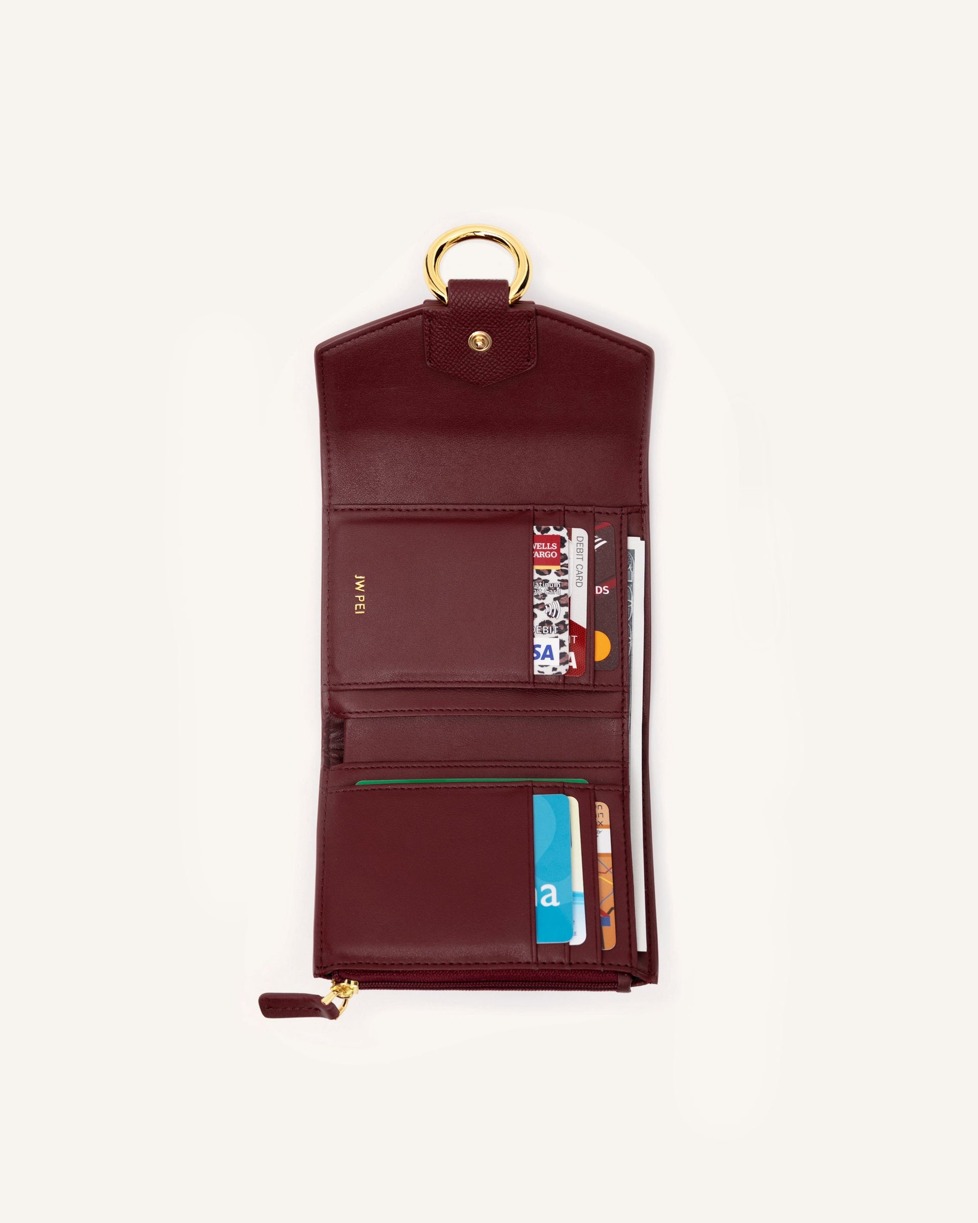 Stella 지갑 - 버건디/나무무늬/비건 가죽